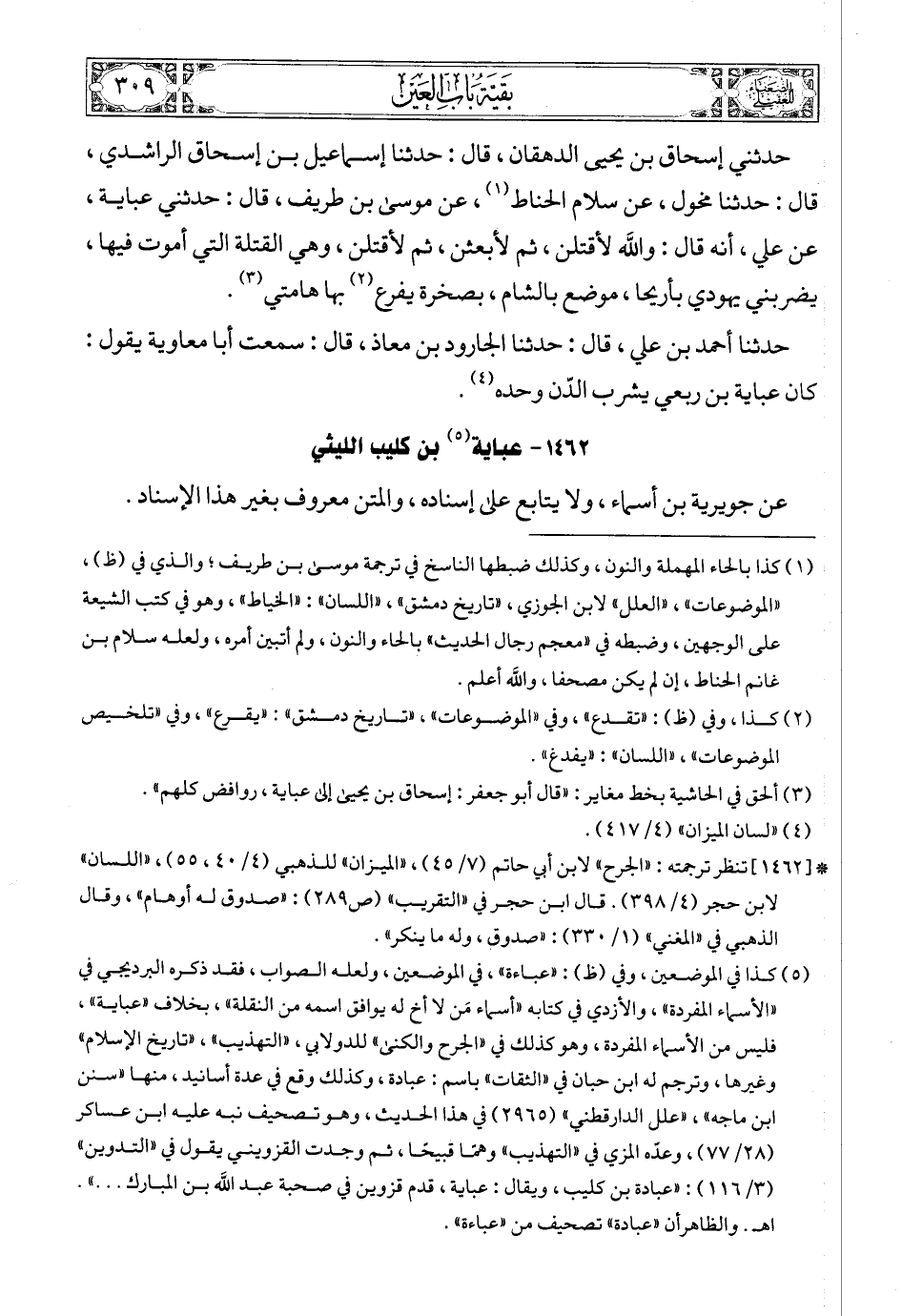 (7) * [1460] تنظر ترجمته: «الإكمال» (6/ 168) لابن ماكولا، «الميزان» للذهبي (5/ 83) , «اللسان» لابن حجر (5/ 429). قال الذهبي في «المغني» (2/ 432): «ما روى عنه سوى يعقوب بن محمد الزهري».