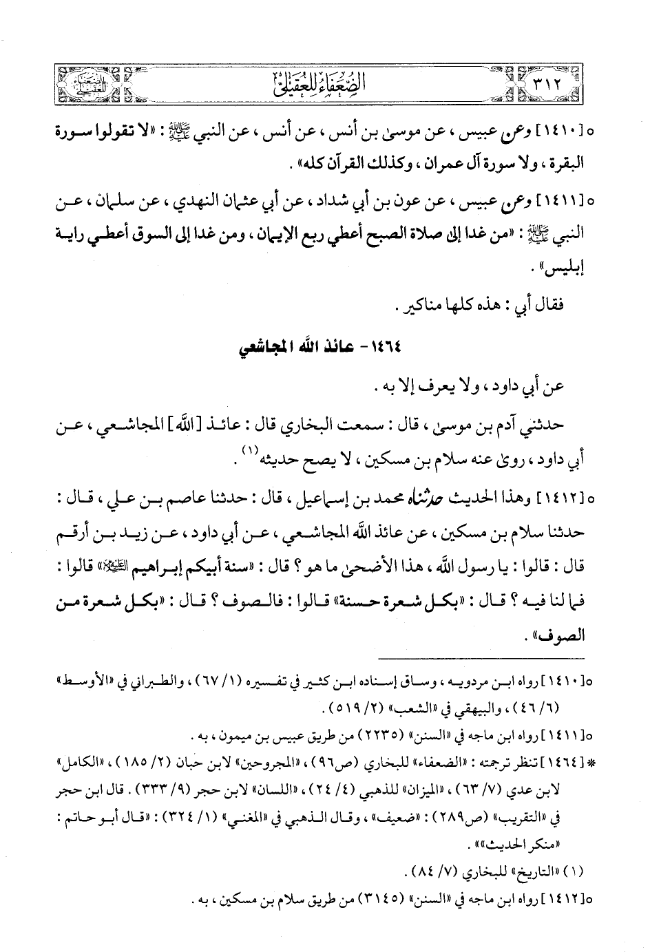 (5) * [1462] تنظر ترجمته: «الجرح» لابن أبي حاتم (7/ 45)، «الميزان» للذهبي (4/ 40، 55) , «اللسان» لابن حجر (4/ 398). قال ابن حجر في «التقريب» (ص289): «صدوق له أوهام» , وقال الذهبي في «المغني» (1/ 330): «صدوق، وله ما ينكر».