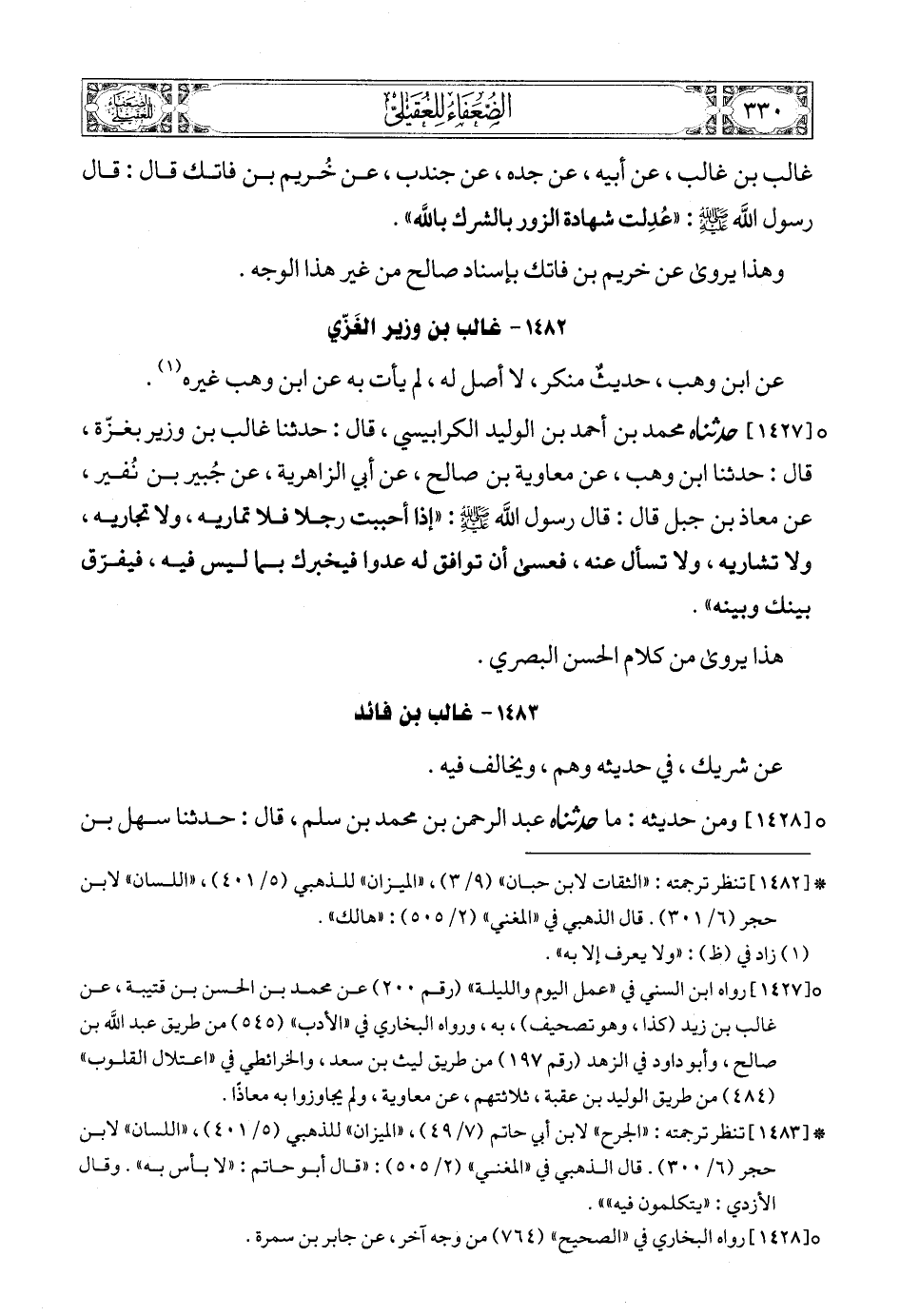 (4) * [1483] تنظر ترجمته: «الجرح» لابن أبي حاتم (7/ 49)، «الميزان» للذهبي (5/ 401) , «اللسان» لابن حجر (6/ 300). قال الذهبي في «المغني» (2/ 505): «قال أبو حاتم: «لا بأس به». وقال الأزدي: «يتكلمون فيه»».