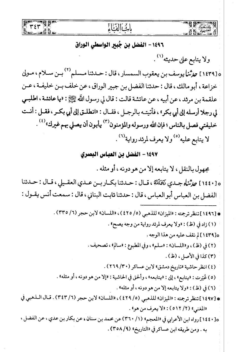 (1) * [1496] تنظر ترجمته: «الميزان» للذهبي (5/ 425) , «اللسان» لابن حجر (6/ 335).