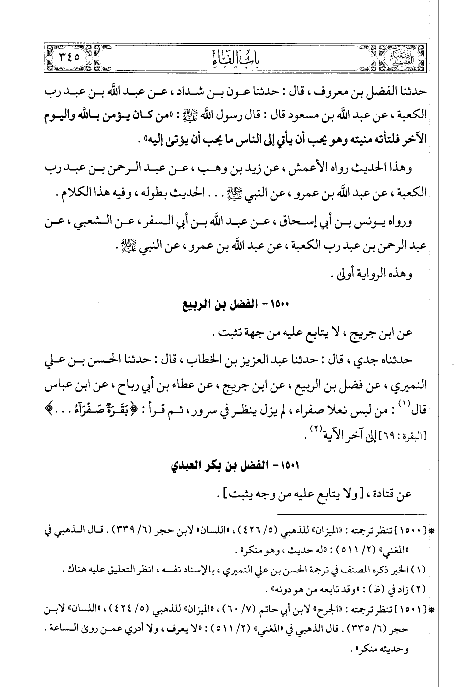 (1) * [1500] تنظر ترجمته: «الميزان» للذهبي (5/ 426) , «اللسان» لابن حجر (6/ 339). قال الذهبي في «المغني» (2/ 511): «له حديث، وهو منكر».