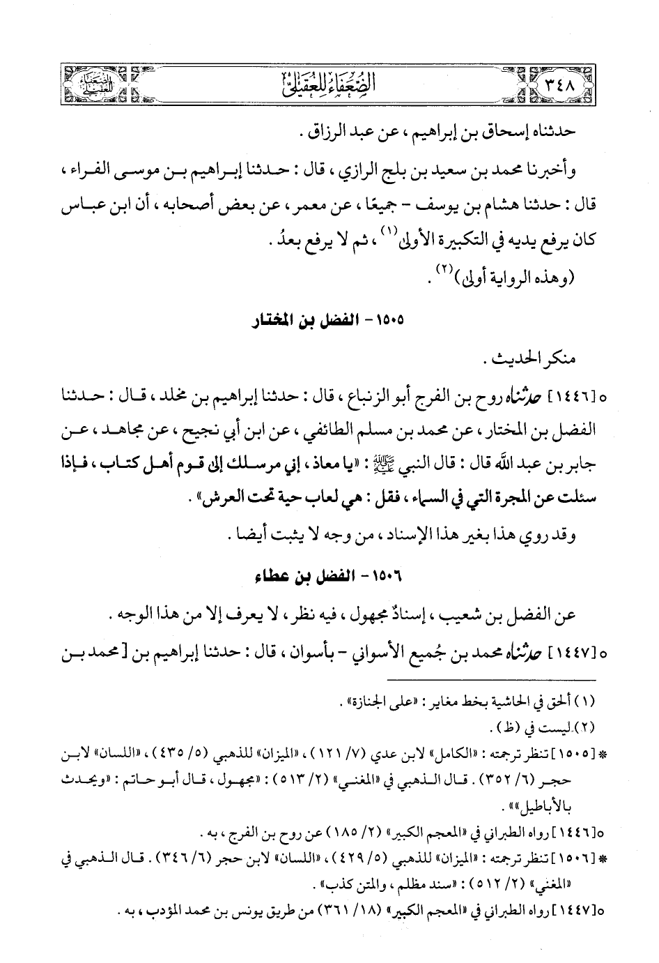 (5) * [1506] تنظر ترجمته: «الميزان» للذهبي (5/ 429) , «اللسان» لابن حجر (6/ 346). قال الذهبي في «المغني» (2/ 512): «سند مظلم، والمتن كذب».