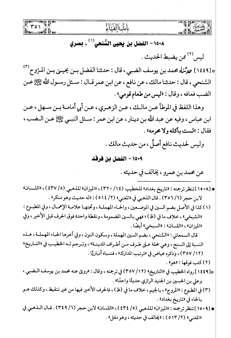 (1) * [1508] تنظر ترجمته: «تاريخ بغداد» للخطيب (14/ 320)، «الميزان» للذهبي (5/ 437) , «اللسان» لابن حجر (6/ 356). قال الذهبي في «المغني» (2/ 514): «له حديث وهو منكر».