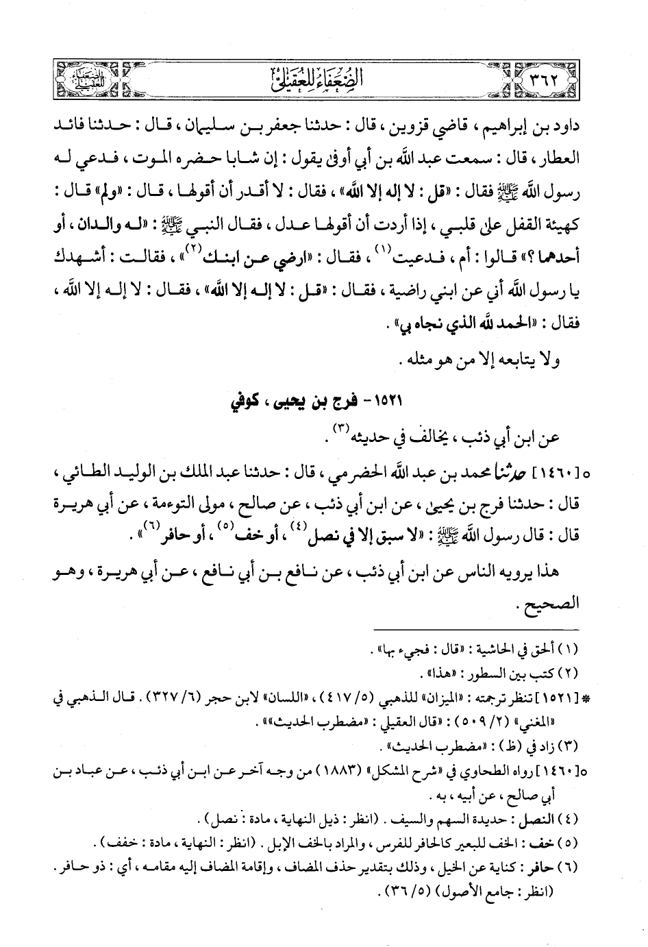 (3) * [1521] تنظر ترجمته: «الميزان» للذهبي (5/ 417) , «اللسان» لابن حجر (6/ 327). قال الذهبي في «المغني» (2/ 509): «قال العقيلي: «مضطرب الحديث»».