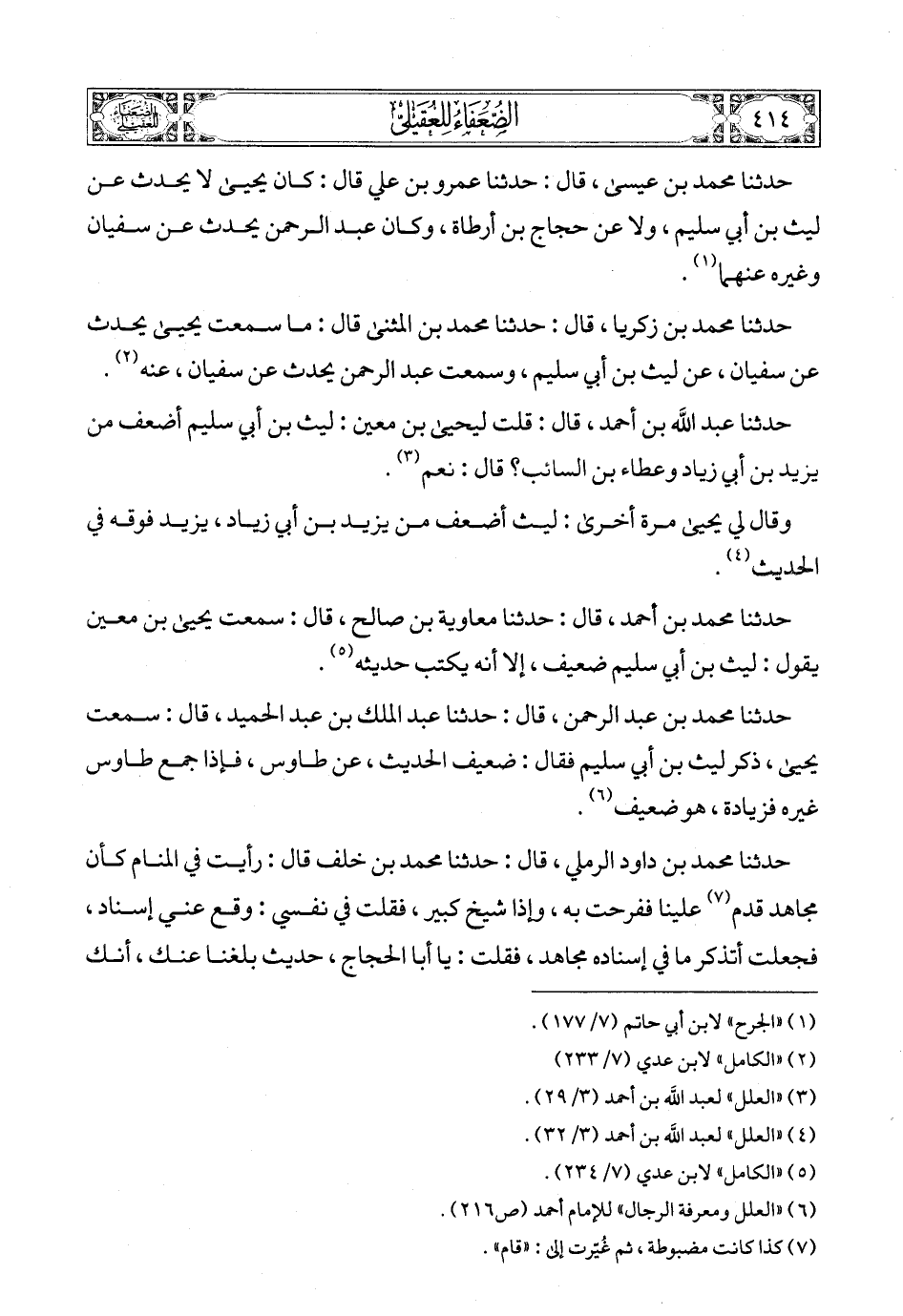 (6) «العلل ومعرفة الرجال» للإمام أحمد (ص216).
