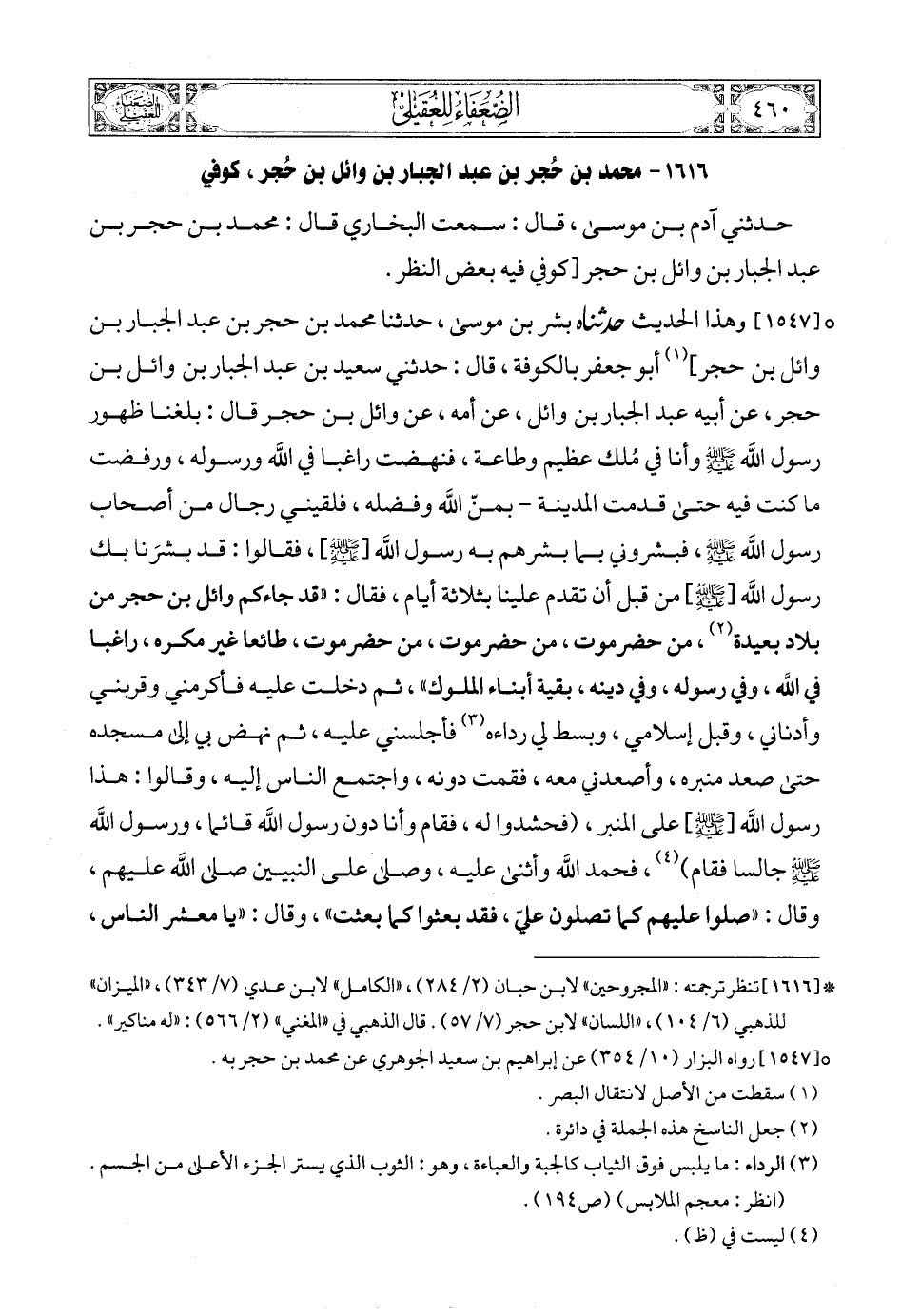 1616 (1) - محمد بن حُجر بن عبد الجبار بن وائل بن حُجر، كوفي