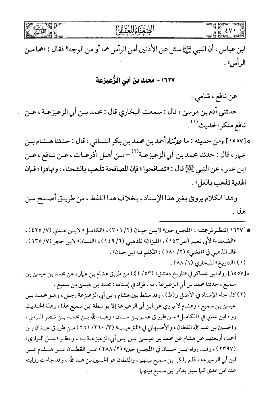 (1) * [1627] تنظر ترجمته: «المجروحين» لابن حبان (2/ 301) , «الكامل» لابن عدي (7/ 425) , «الضعفاء» لأبي نعيم (ص143) , «الميزان» للذهبي (6/ 149) , «اللسان» لابن حجر (7/ 135). قال الذهبي في «المغني» (2/ 580): «تكلم فيه ابن حبان».