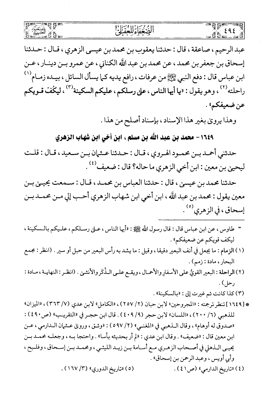 1649 (4) - محمد بن عبد الله بن مسلم، ابن أخي ابن شهاب الزهري