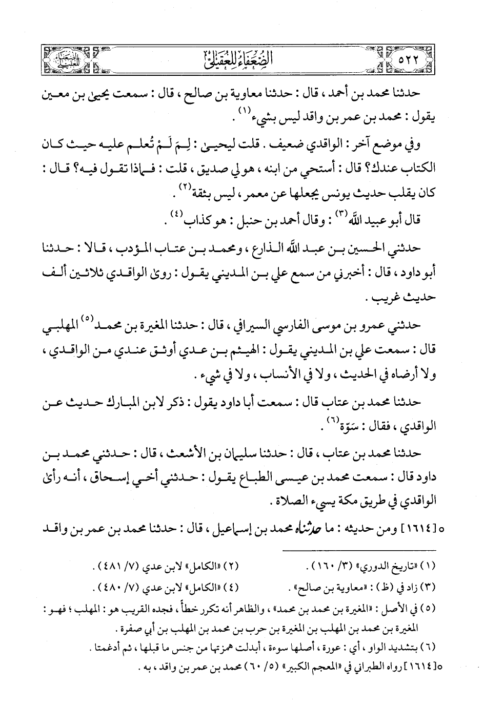 (7) [1614] رواه الطبراني في «المعجم الكبير» (5/ 60) محمد بن عمر بن واقد، به.
