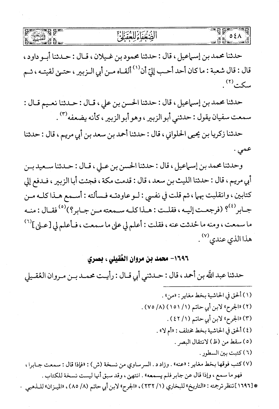 (8) حدثنا عبد الله بن أحمد، قال: حدثني أبي قال: رأيت محمد بن مروان العُقيلي