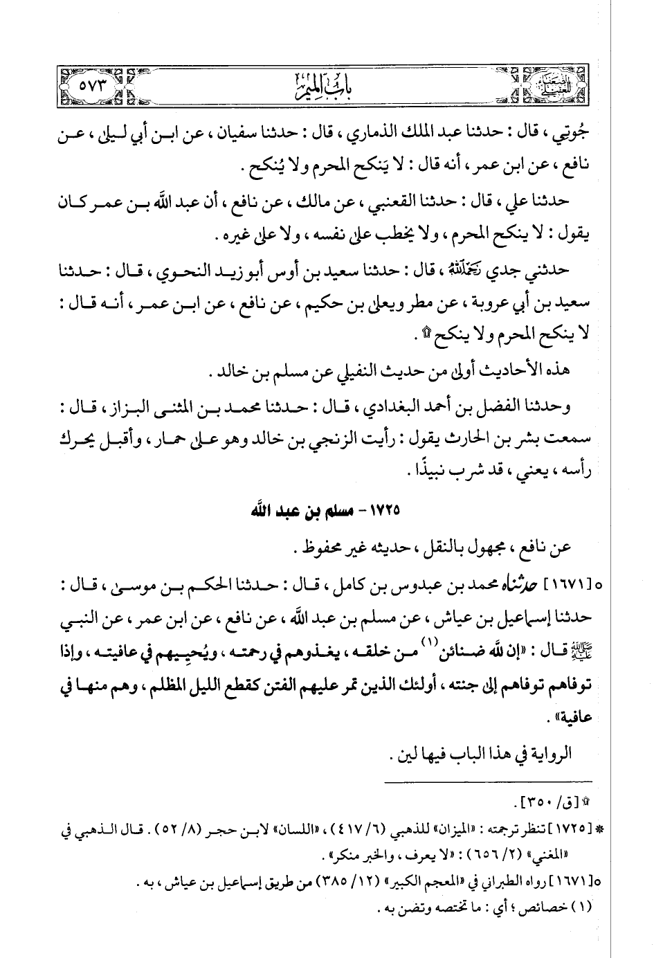 (2) * [1725] تنظر ترجمته: «الميزان» للذهبي (6/ 417) , «اللسان» لابن حجر (8/ 52). قال الذهبي في «المغني» (2/ 656): «لا يعرف، والخبر منكر».