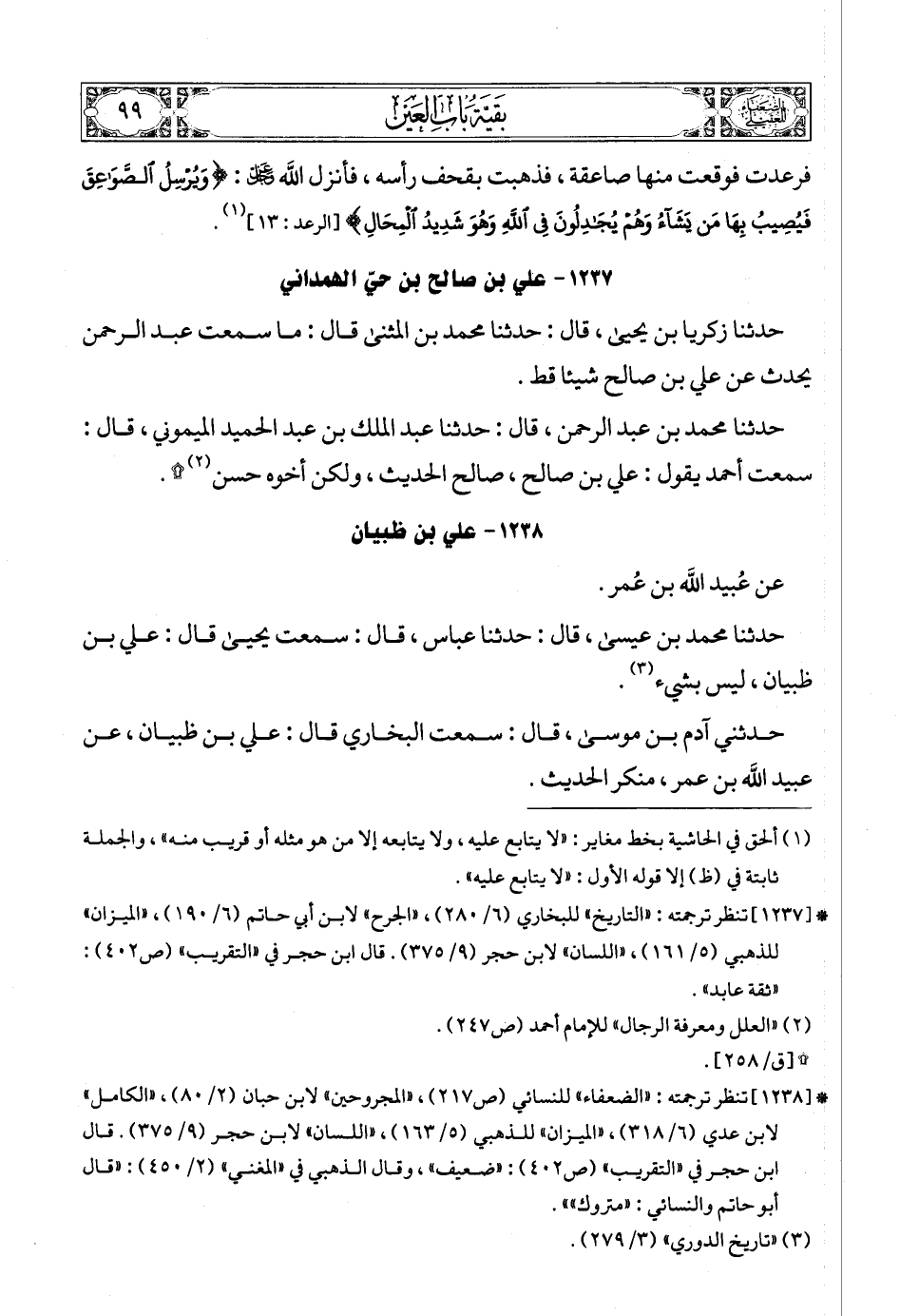 (6) * [1237] تنظر ترجمته: «التاريخ» للبخاري (6/ 280)، «الجرح» لابن أبي حاتم (6/ 190)، «الميزان» للذهبي (5/ 161) , «اللسان» لابن حجر (9/ 375). قال ابن حجر في «التقريب» (ص402): «ثقة عابد».
