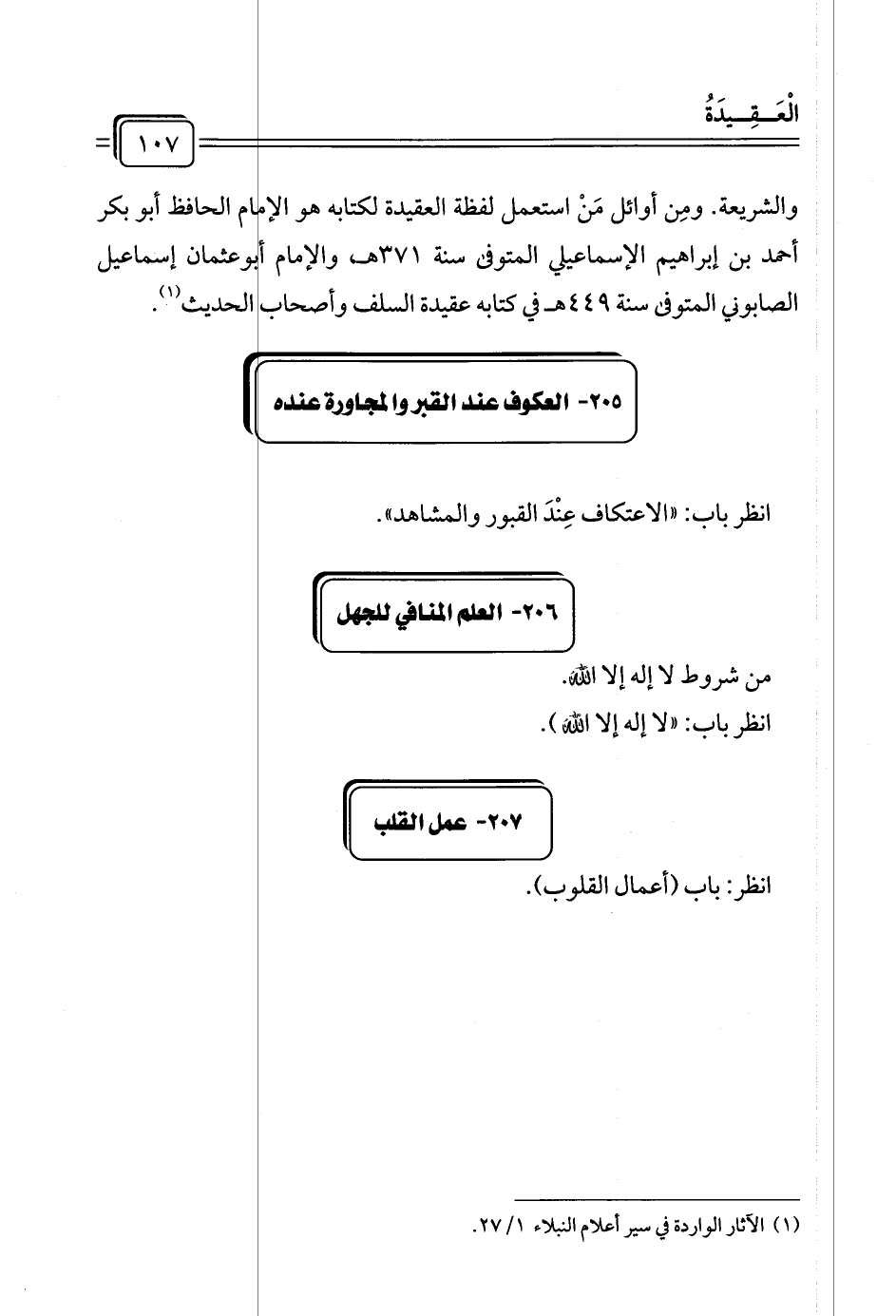 والشريعة. ومِن أوائل مَنْ استعمل لفظة العقيدة لكتابه هو الإمام الحافظ أبو بكر أحمد بن إبراهيم الإسماعيلي المتوفى سنة ٣٧١ هـ، والإمام أبو عثمان إسماعيل الصابوني المتوفى سنة ٤٤٩ هـ في كتابه عقيدة السلف وأصحاب الحديث (¬١).