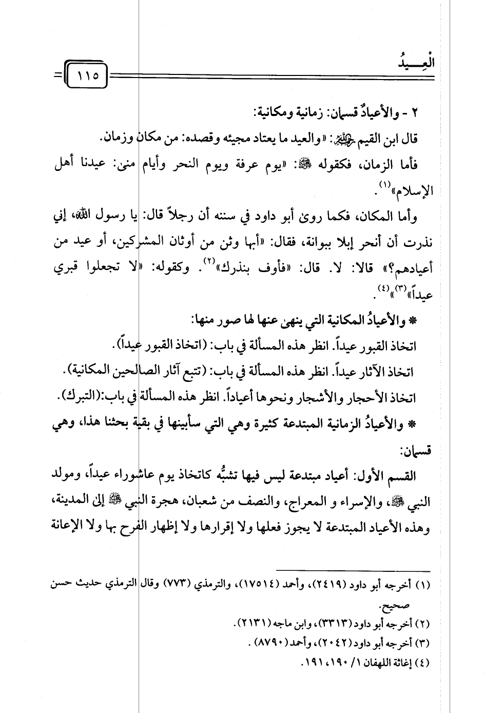 ٢ - والأعيادٌ قسمان: زمانية ومكانية: