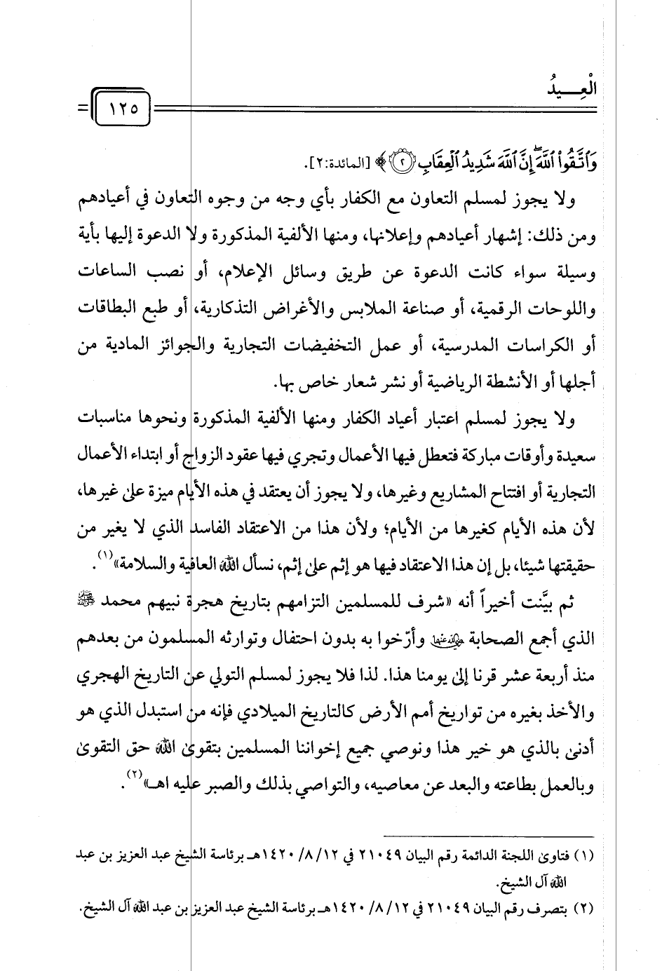 (¬١) فتاوى اللجنة الدائمة رقم البيان ٢١٠٤٩ في ١٢/ ٨/ ١٤٢٠ هـ برئاسة الشيخ عبد العزيز بن عبد الله آل الشيخ.