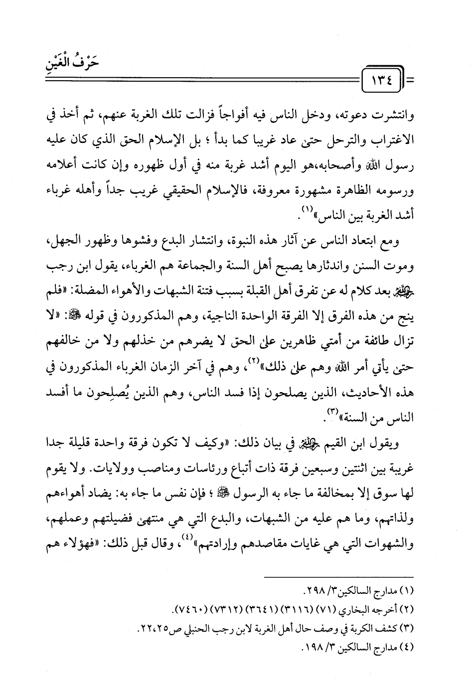 (¬٣) كشف الكربة في وصف حال أهل الغربة لابن رجب الحنبلي ص ٢٥، ٢٢.