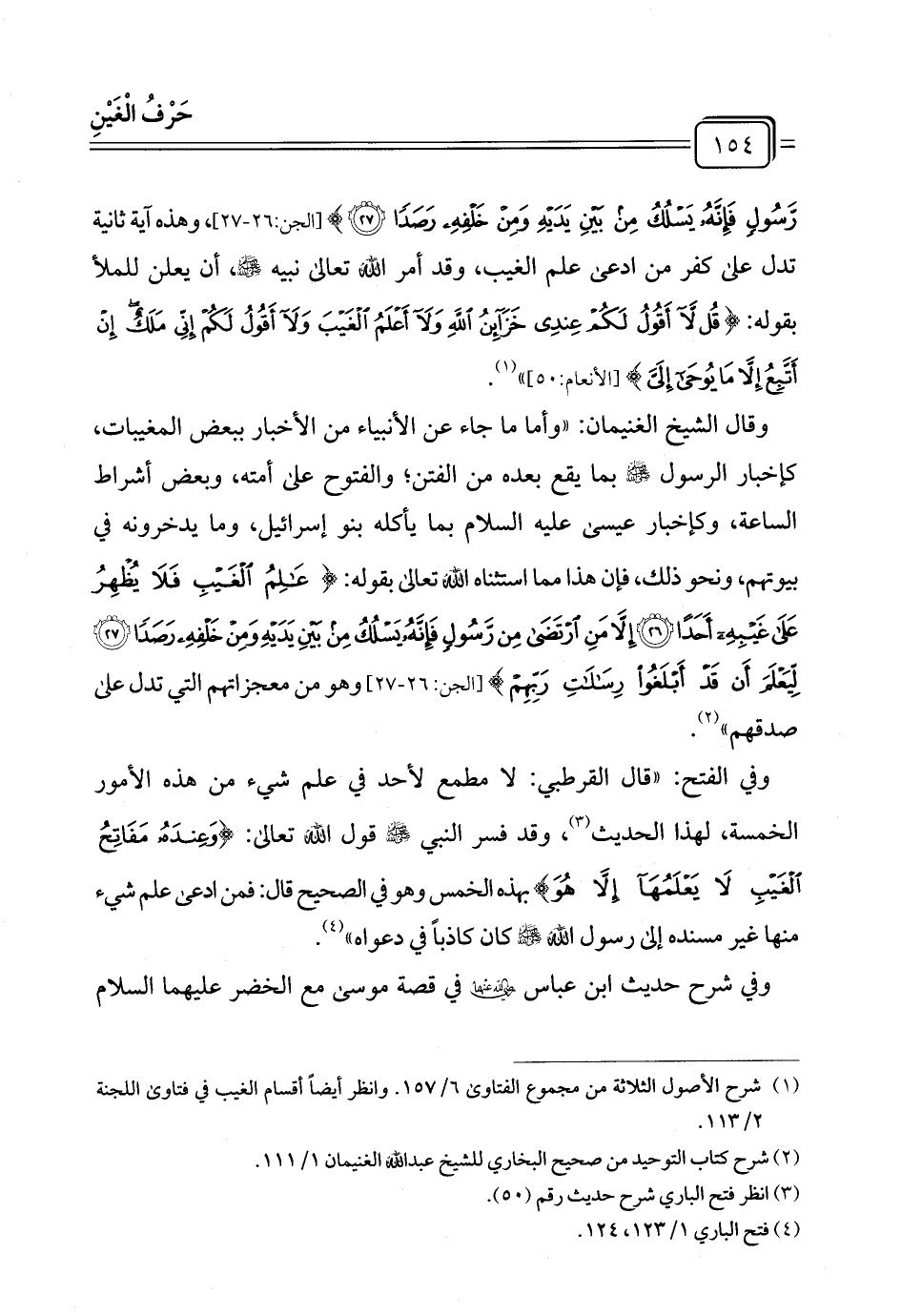 (¬١) شرح الأصول الثلاثة من مجموع الفتاوى ٦/ ١٥٧. وانظر أيضًا أقسام الغيب في فتاوى اللجنة ٢/ ١١٣.