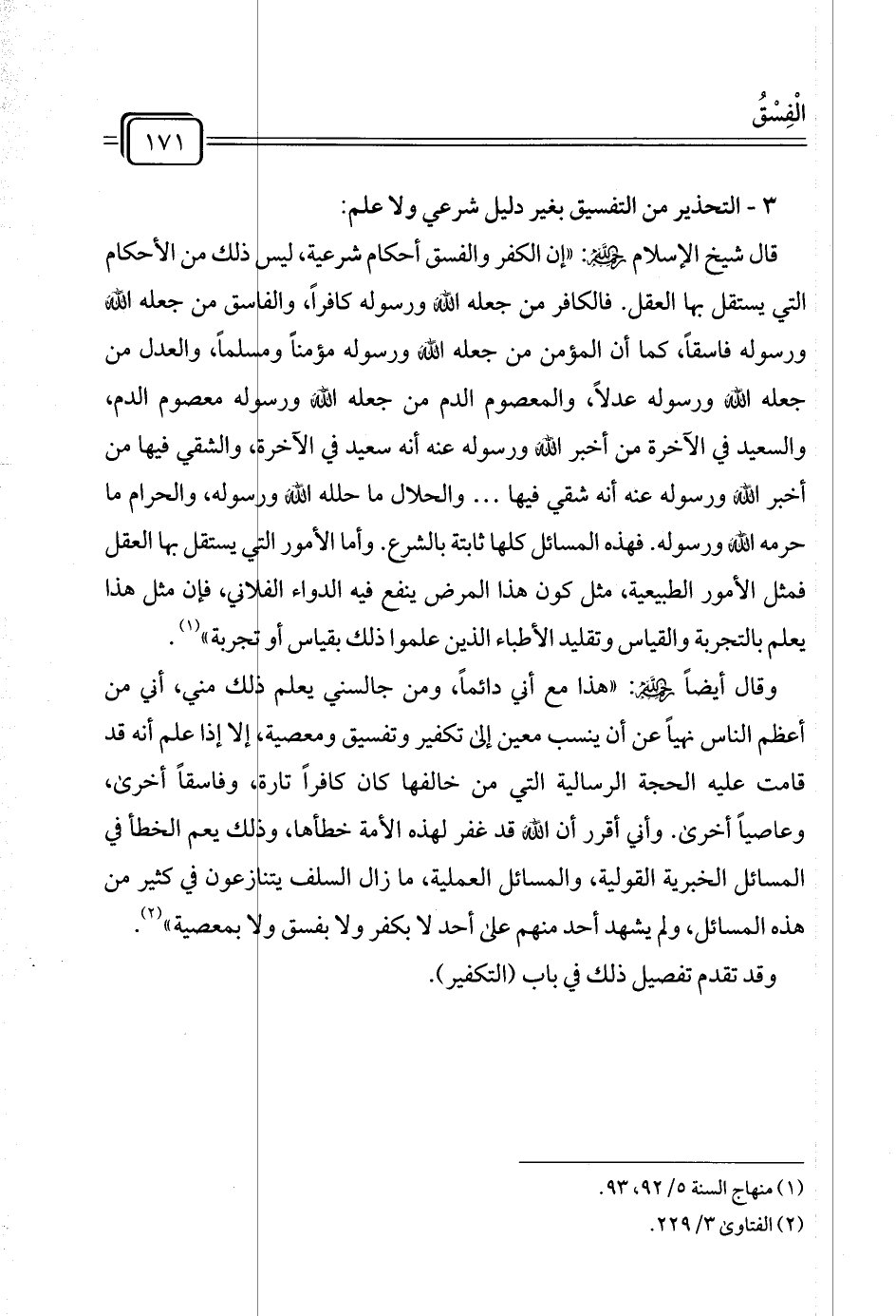 ٣ - التحذير من التفسيق بغير دليل شرعي ولا علم: