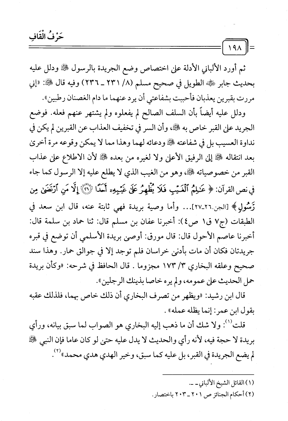 (¬٢) أحكام الجنائز ص ٢٠١ - ٢٠٣ باختصار.