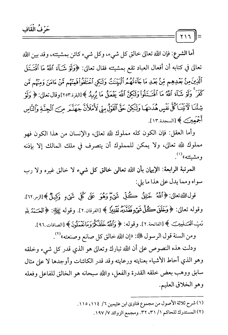 (¬١) شرح ثلاثة الأصول من مجموع فتاوى ابن عثيمين ٦/ ١١٤، ١١٥.