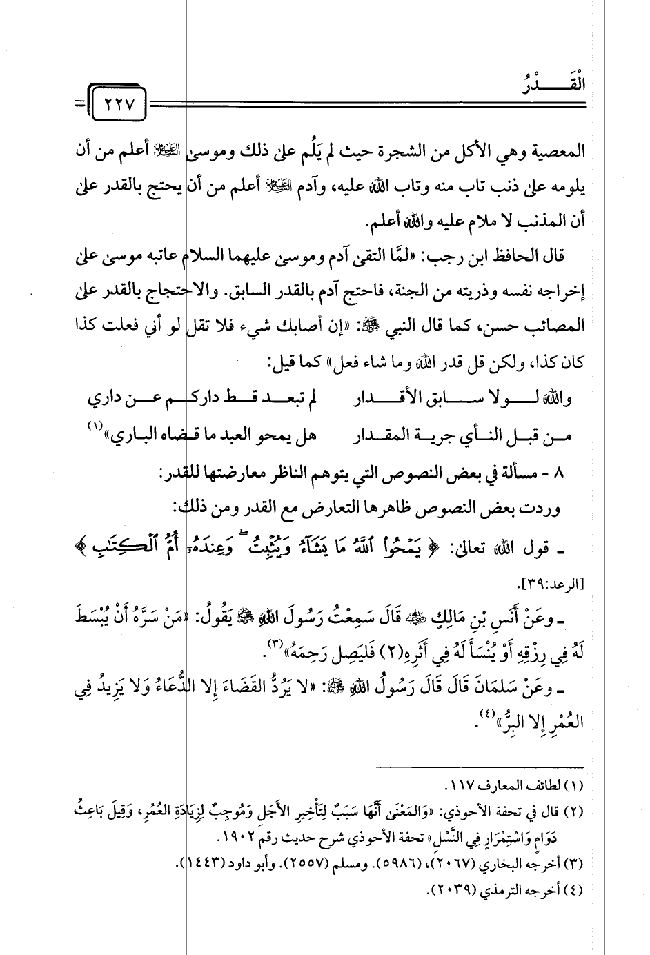 - قول الله تعالى: {يَمْحُو اللَّهُ مَا يَشَاءُ وَيُثْبِتُ وَعِنْدَهُ أُمُّ الْكِتَابِ} [الرعد: ٣٩].