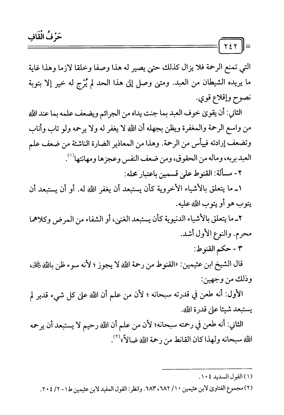 ٢ - مسألة: القنوط على قسمين باعتبار محله: