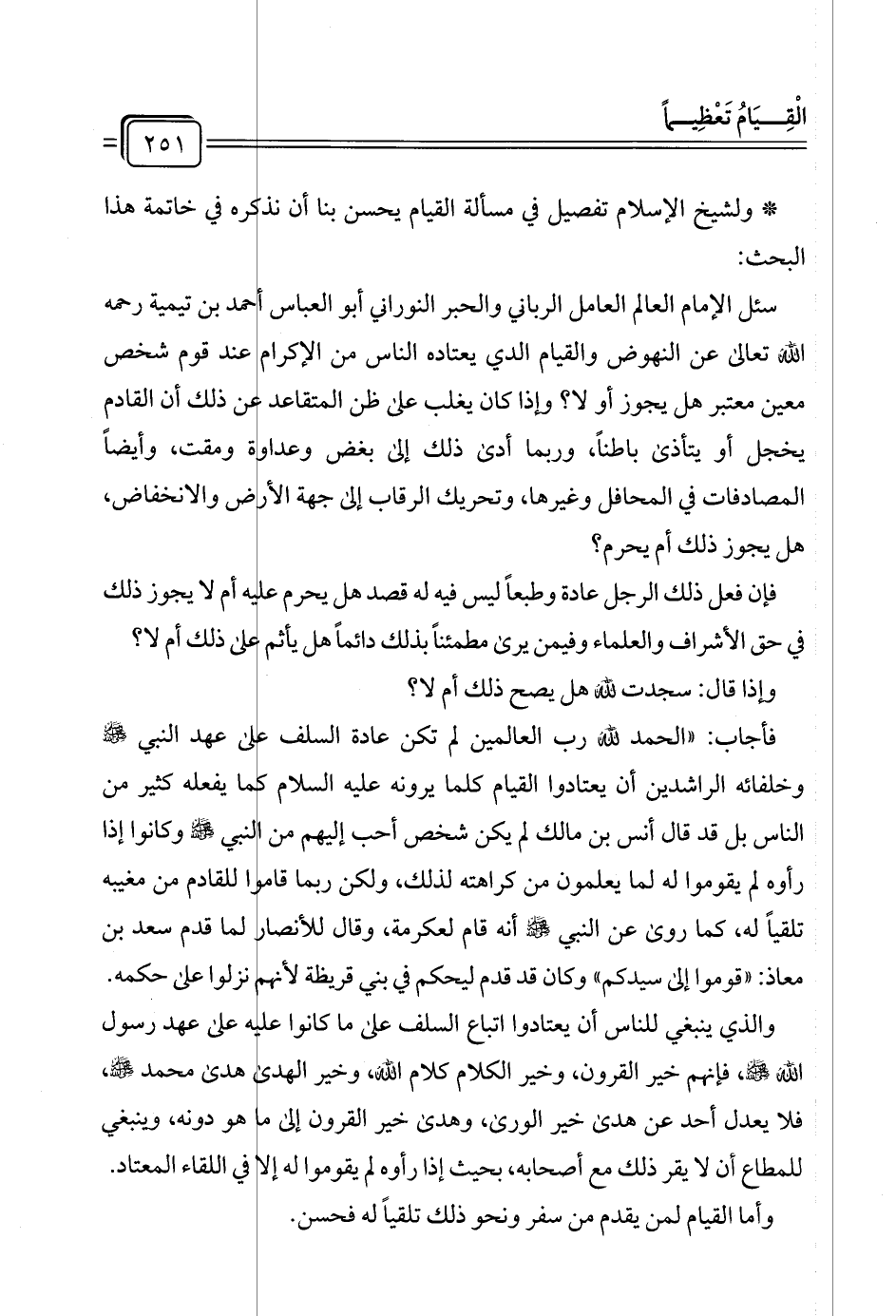 * ولشيخ الإسلام تفصيل في مسألة القيام يحسن بنا أن نذكره في خاتمة هذا البحث: