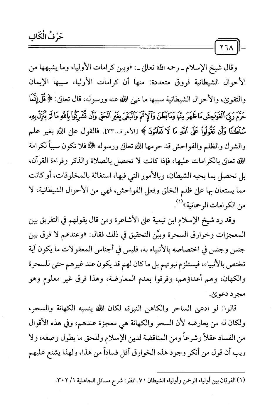 (¬١) الفرقان بين أولياء الرحمن وأولياء الشيطان ٧١ انظر: شرح مسائل الجاهلية ١/ ٣٠٢.
