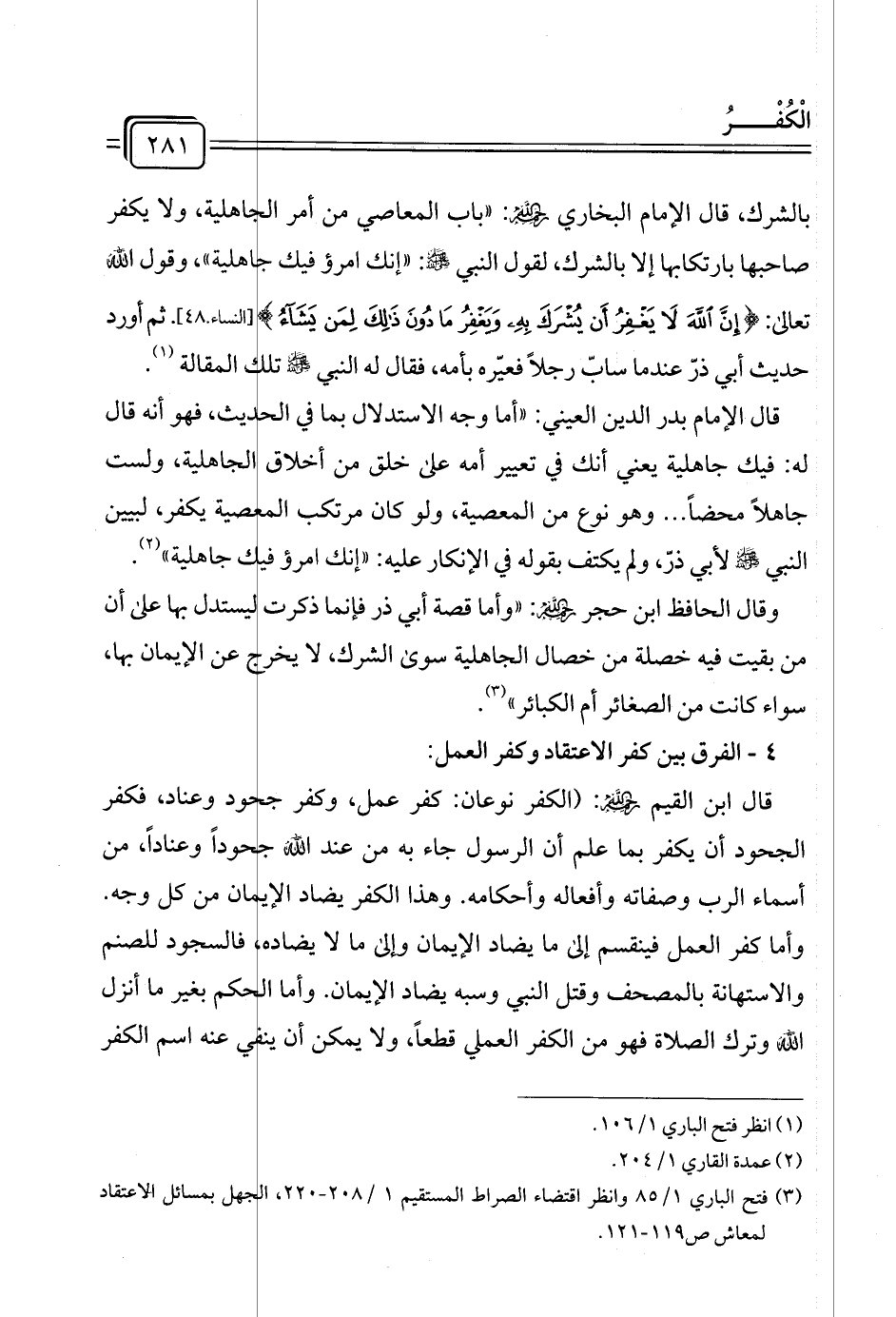 (¬٣) فتح الباري ١/ ٨٥ وانظر اقتضاء الصراط المستقيم ١/ ٢٠٨ - ٢٢٠، الجهل بمسائل الاعتقاد لمعاش ص ١١٩ - ١٢١.