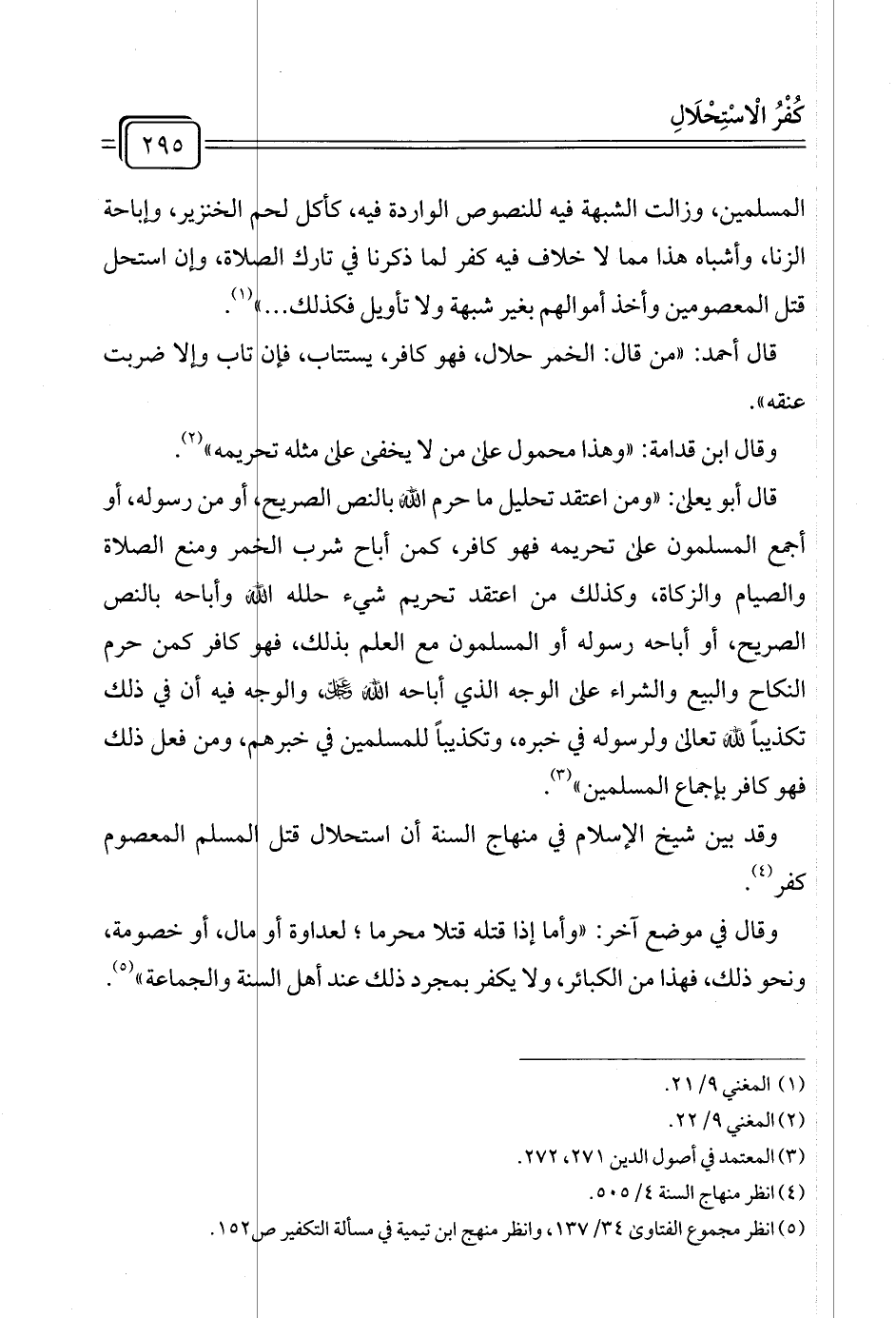 وقد بين شيخ الإسلام في منهاج السنة أن استحلال قتل لمسلم المعصوم كفر (¬٤).