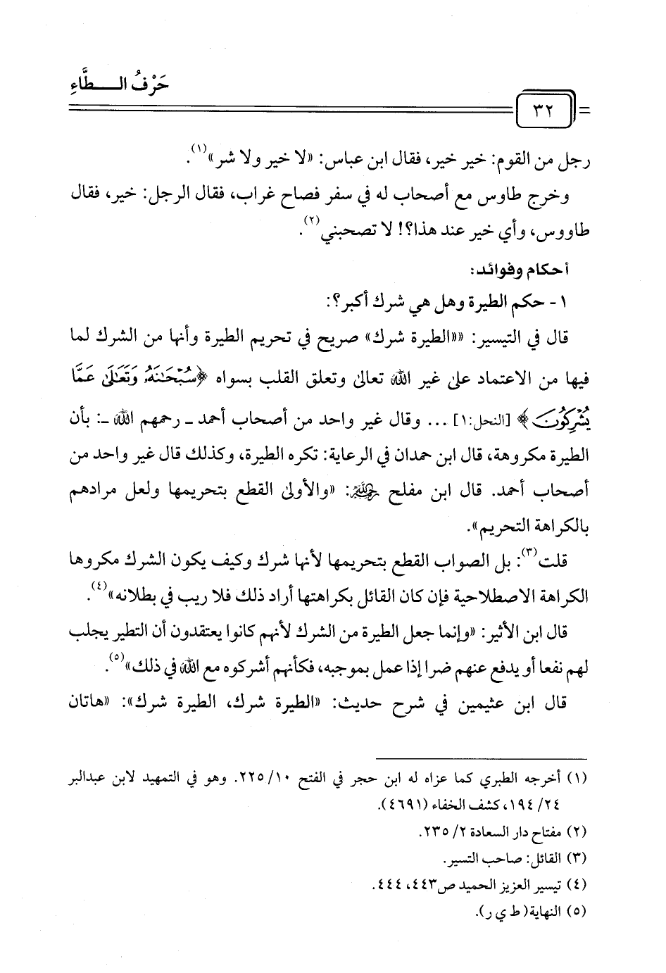 قال ابن عثيمين في شرح حديث: "الطيرة شرك، الطيرة شرك": "هاتان