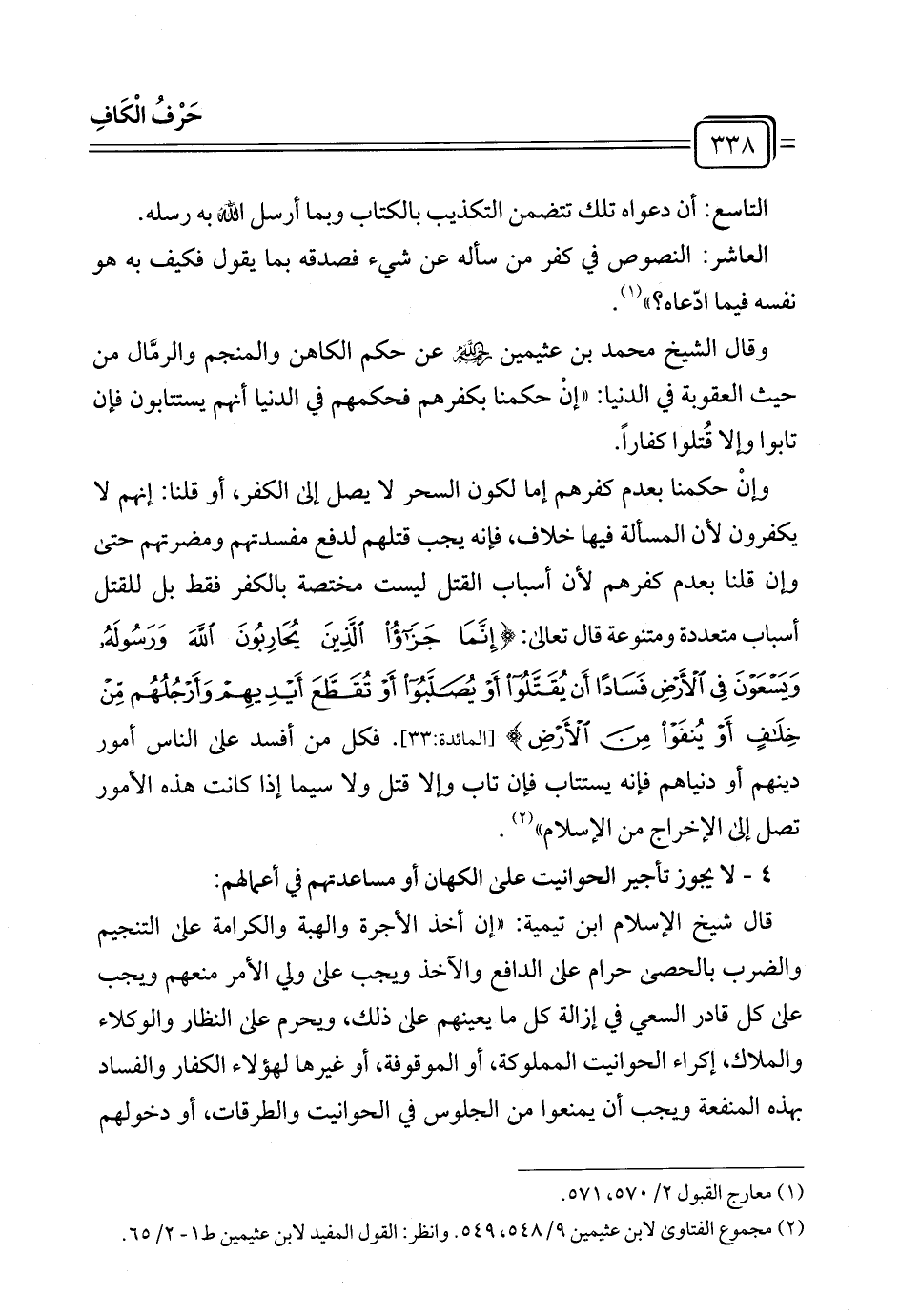 (¬٢) مجموع الفتاوى لابن عثيمين ٩/ ٥٤٨، ٥٤٩. وانظر: القول المفيد لابن عثيمين ط ١ - ٢/ ٦٥.