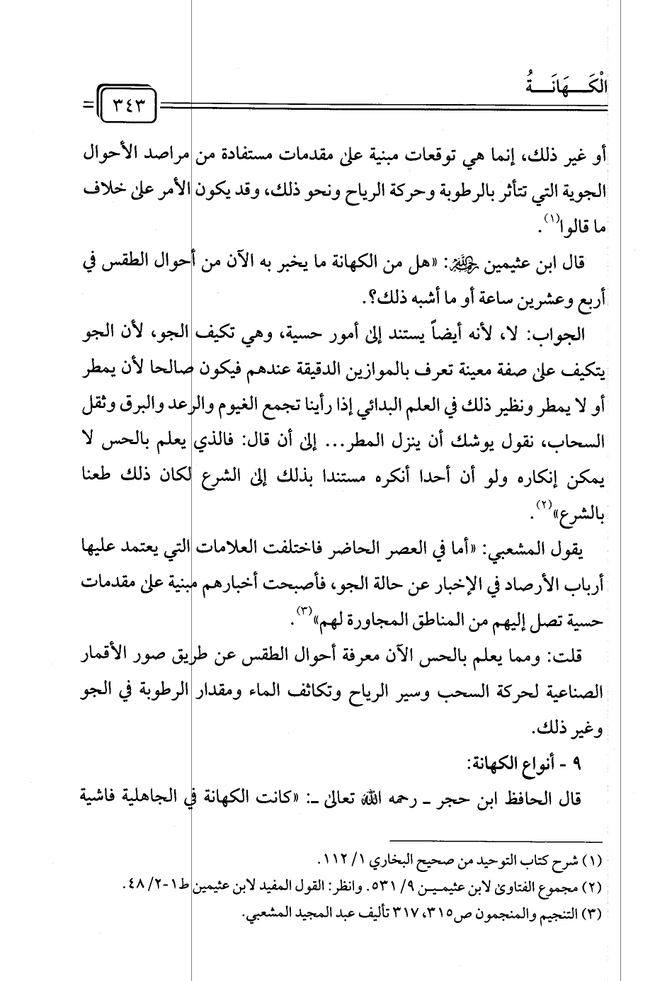 قال ابن عثيمين رحمه الله: "هل من الكهانة ما يخبر به الآن من أحوال الطقس في أربع وعشرين ساعة أو ما أشبه ذلك؟.