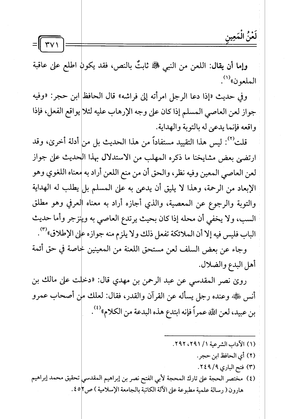 (¬٤) مختصر الحجة على تارك المحجة لأبي الفتح نصر بن إبراهيم المقدسي تحقيق محمد إبراهيم هارون (رسالة علمية مطبوعة على الآلة الكاتبة بالجامعة الإسلامية) ص ٤٥٢.