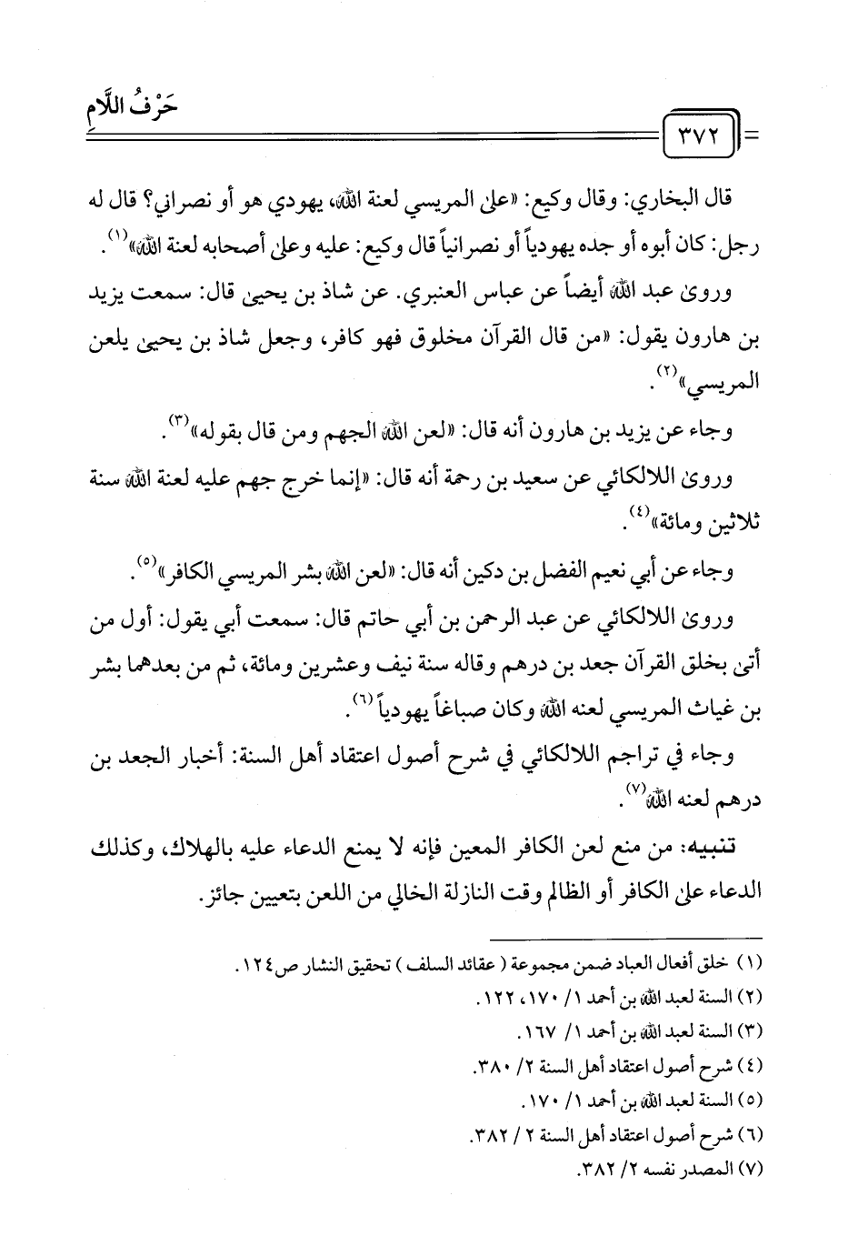 (¬٦) شرح أصول اعتقاد أهل السنة ٢/ ٣٨٢.