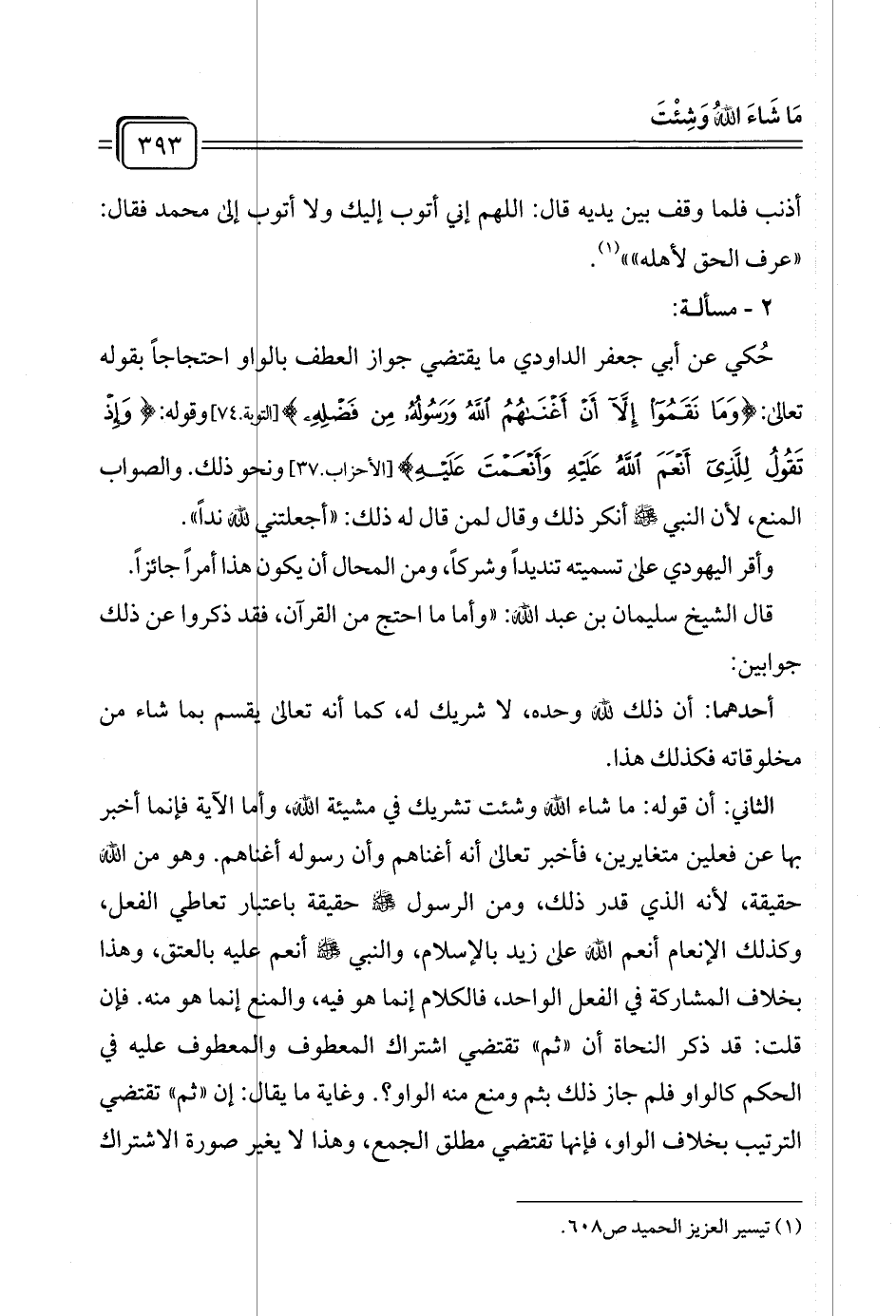 (¬١) تيسير العزيز الحميد ص ٦٠٨.