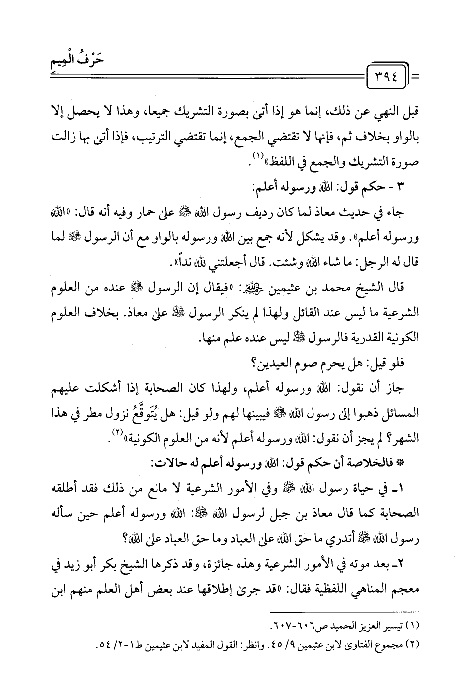 (¬٢) مجموع الفتاوى لابن عثيمين ٩/ ٤٥. وانظر: القول المفيد لابن عثيمين ط ١ - ٢/ ٥٤.