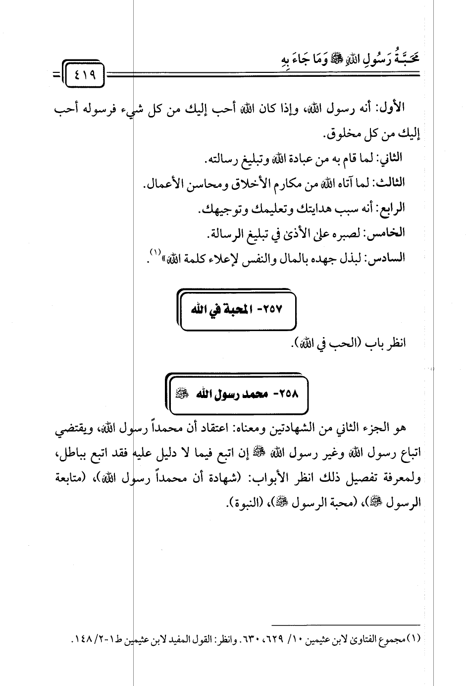 (¬١) مجموع الفتاوى لابن عثيمين ١٠/ ٦٢٩، ٦٣٠. وانظر: القول المفيد لابن عثيمين طـ ١ - ٢/ ١٤٨.