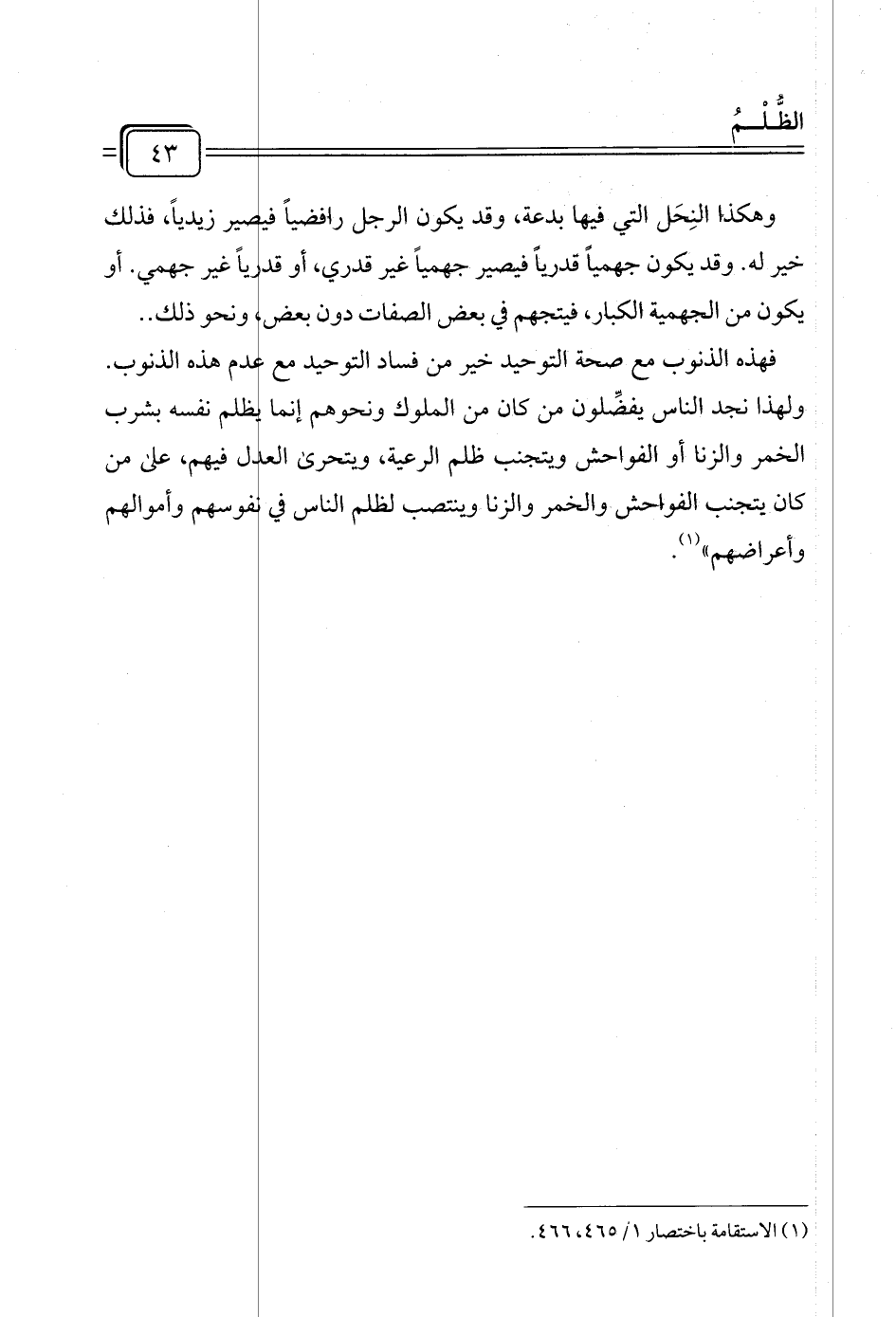 (¬١) الاستقامة باختصار ١/ ٤٦٥، ٤٦٦.