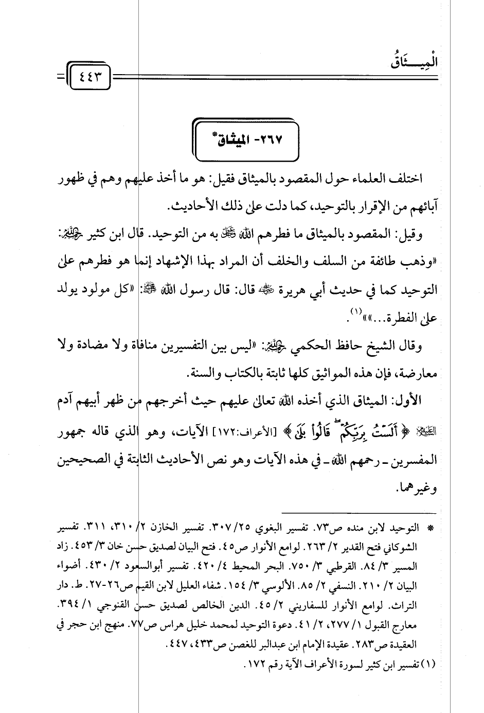 (¬١) تفسير ابن كثير لسورة الأعراف الآية رقم ١٧٢.