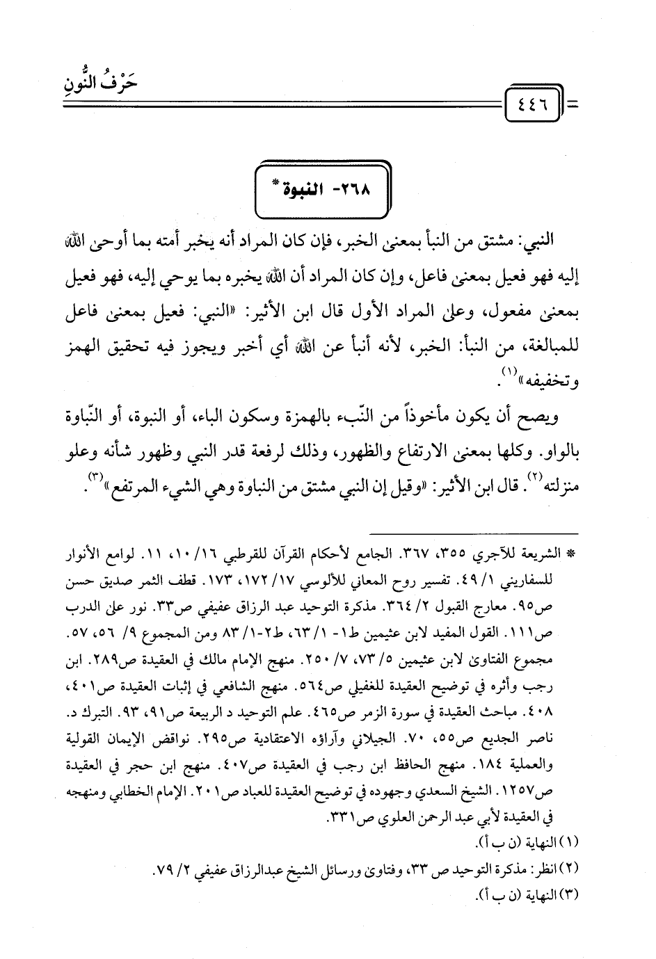 (¬٢) انظر: مذكرة التوحيد ص ٣٣، وفتاوى ورسائل الشيخ عبد الرزاق عفيفي ٢/ ٧٩.