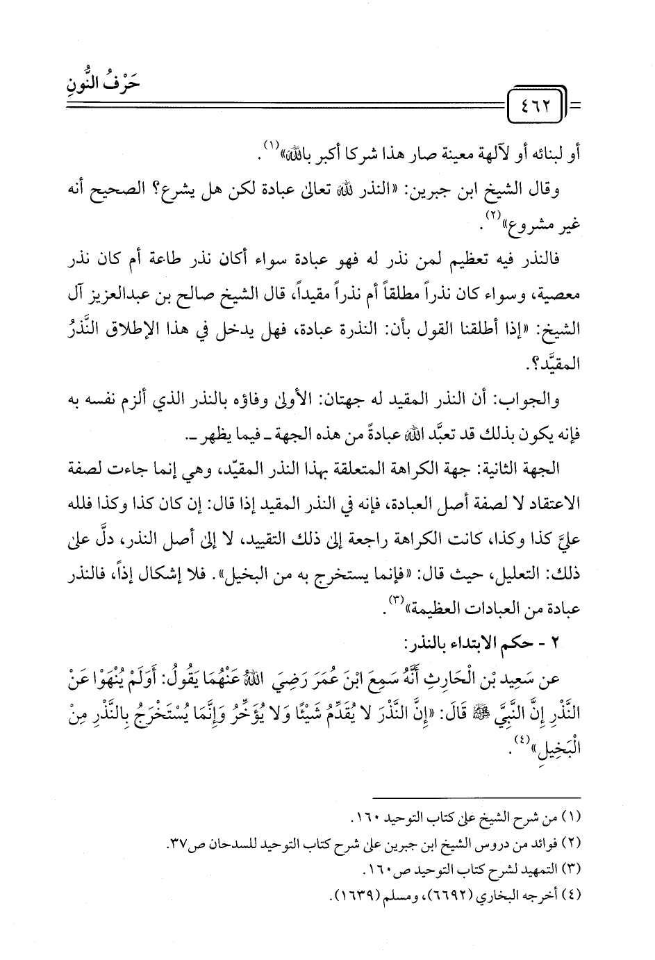 (¬٢) فوائد من دروس الشيخ ابن جبرين على شرح كتاب التوحيد للسدحان ص ٣٧.