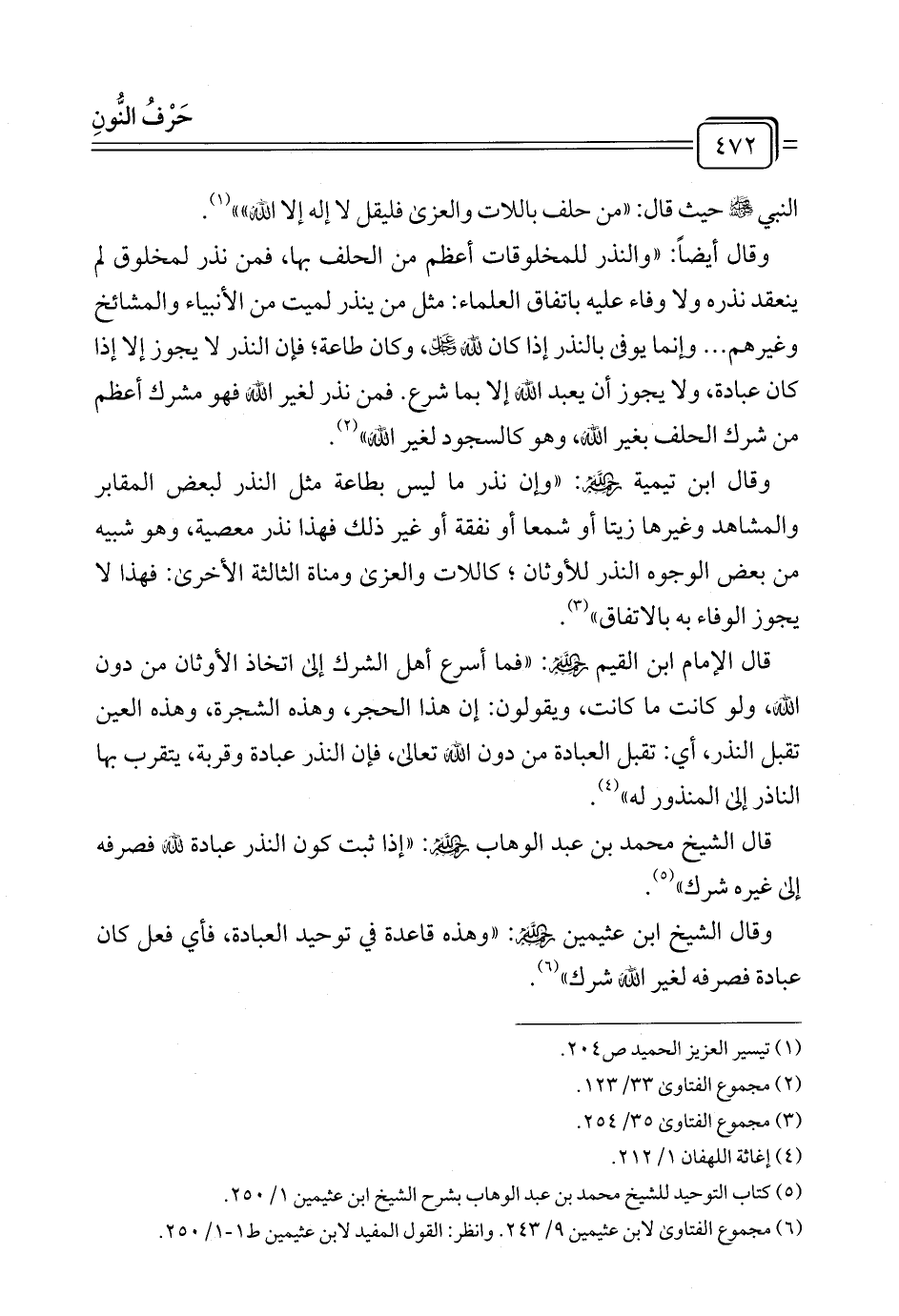 (¬٦) مجموع الفتاوى لابن عثيمين ٩/ ٢٤٣. وانظر: القول المفيد لابن عثيمين ط ١ - ١/ ٢٥٠.