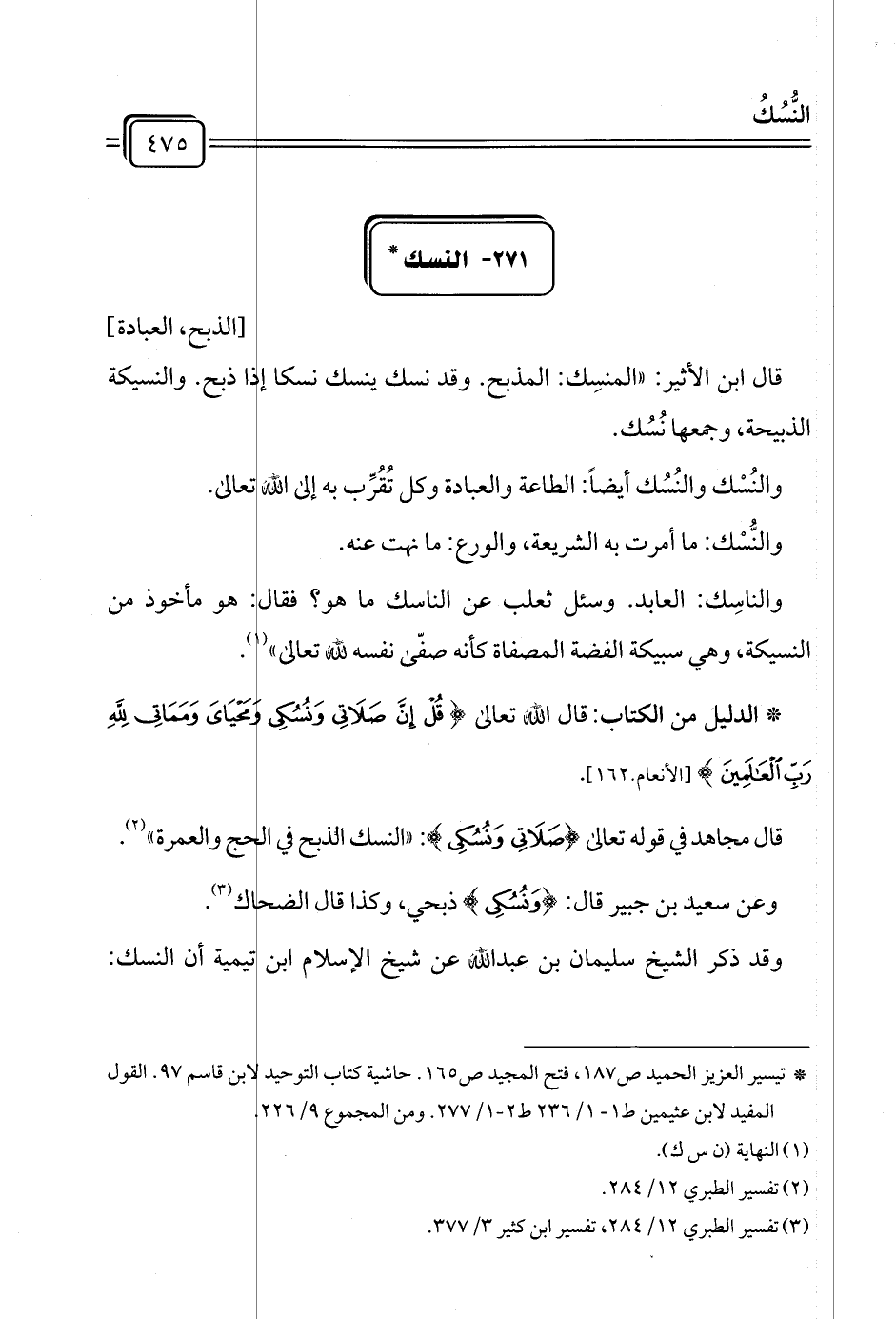 قال مجاهد في قوله تعالى {صَلَاتِي وَنُسُكِي}: "النسك الذبح في الحج والعمرة" (¬٢).