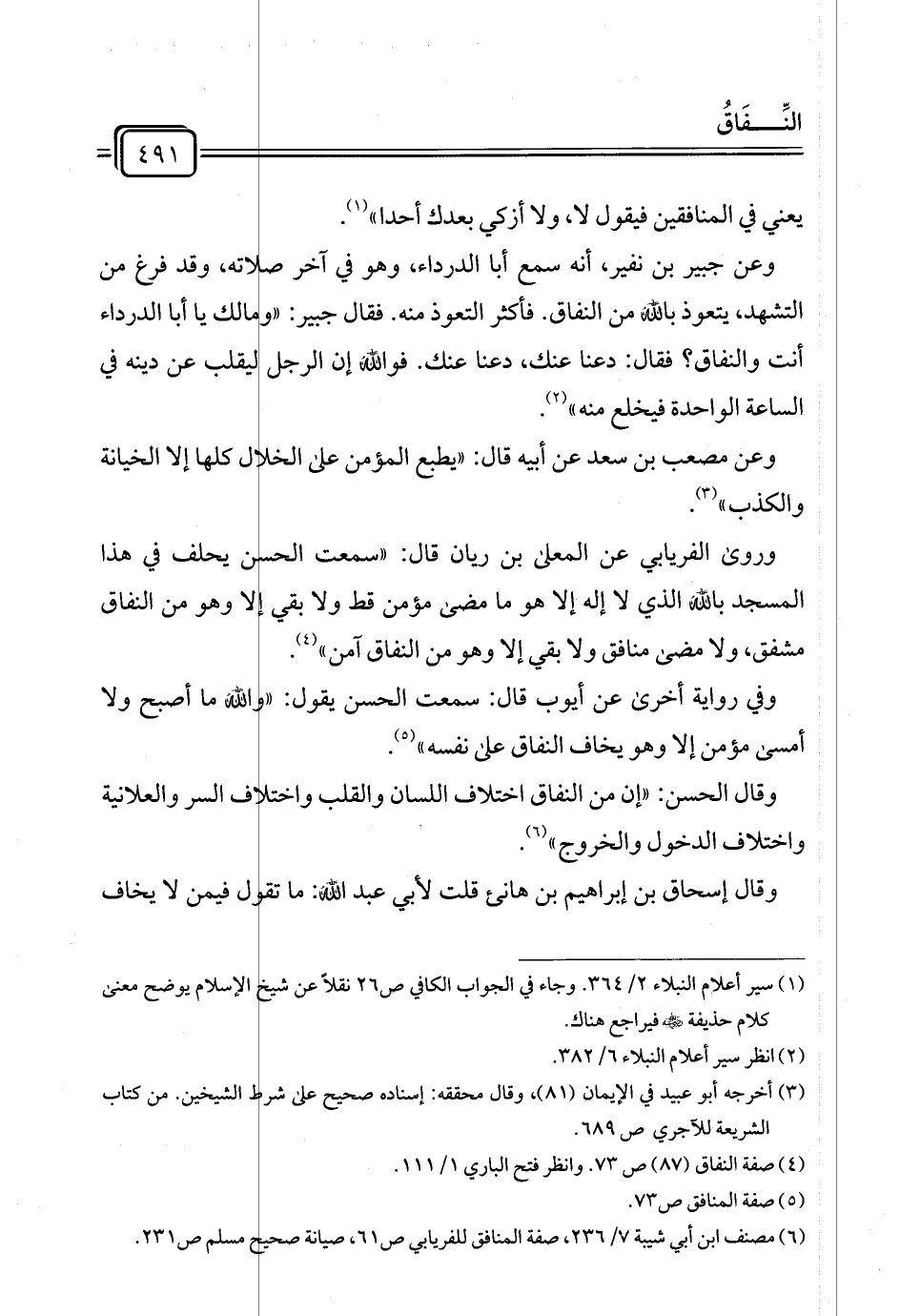 (¬٦) مصنف ابن أبي شيبة ٧/ ٢٣٦، صفة المنافق للفريابي ص ٦١، صيانة صحيح مسلم ص ٢٣١.
