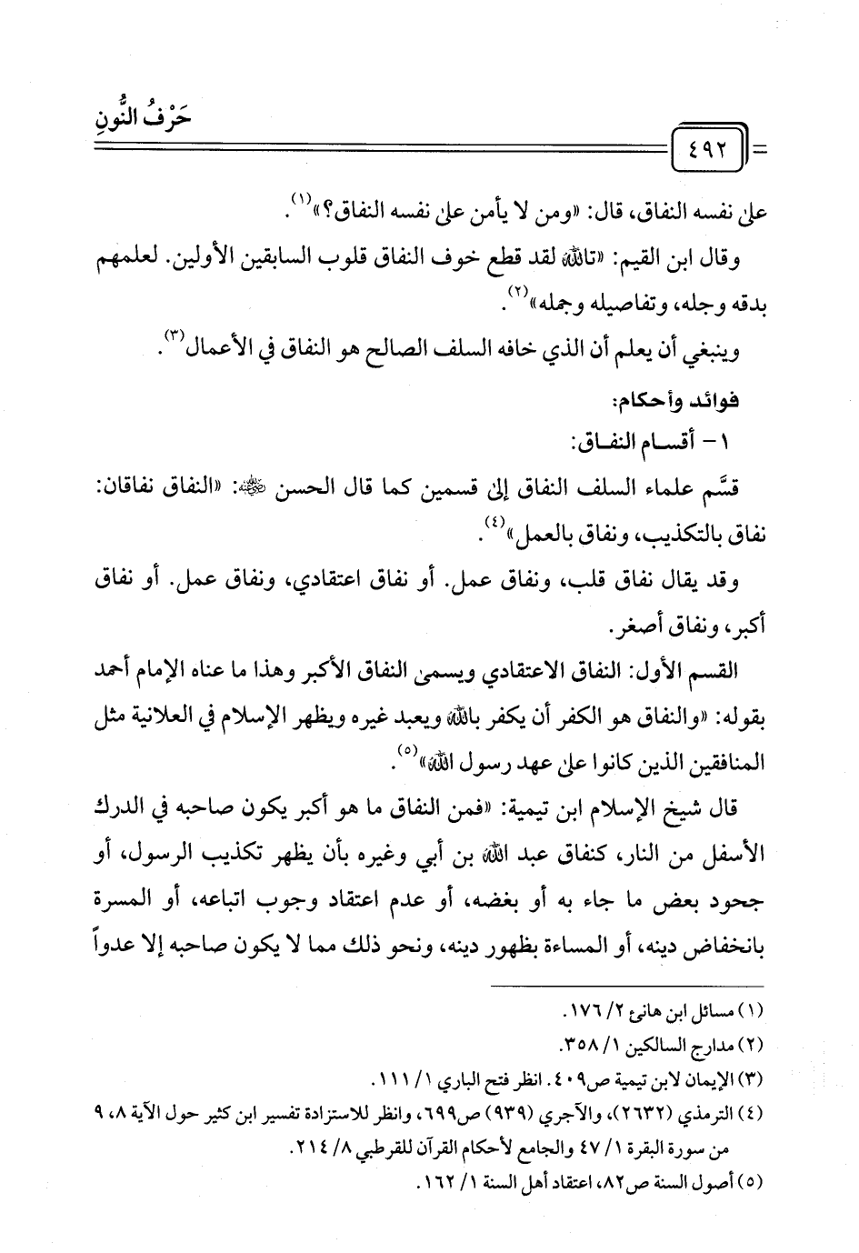 وينبغي أن يعلم أن الذي خافه السلف الصالح هو النفاق في الأعمال (¬٣).
