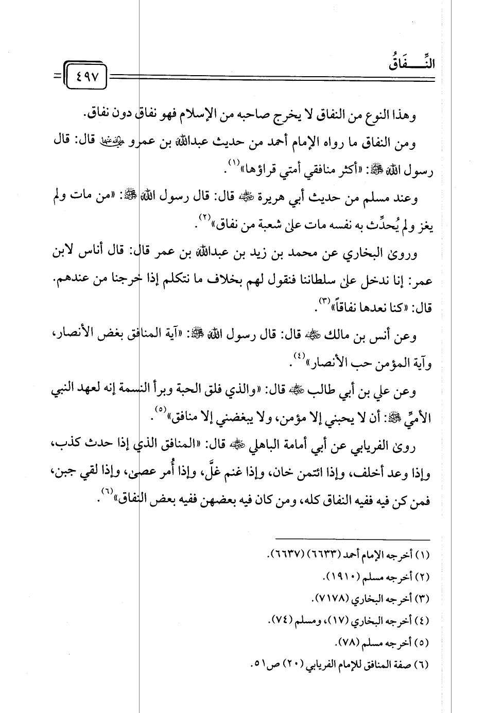 (¬٦) صفة المنافق للإمام الفريابي (٢٠) ص ٥١.