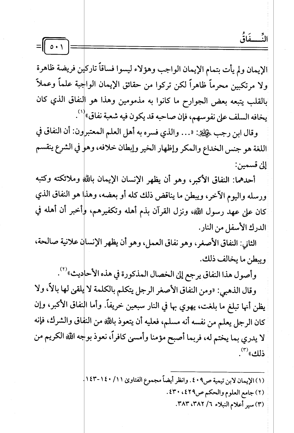 (¬١) الإيمان لابن تيمية ص ٤٠٩. وانظر أيضًا مجموع الفتاوى ١١/ ١٤٠ - ١٤٣.
