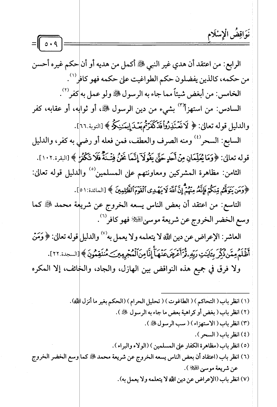 (¬٢) انظر باب (بغض أو كراهية بعض ما جاء به الرسول - صلى الله عليه وسلم -).