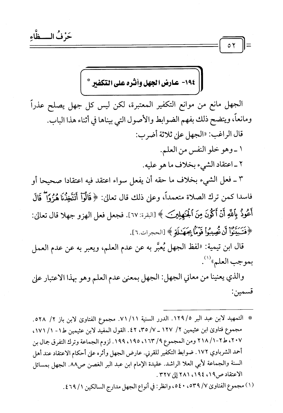 (¬١) مجموع الفتاوى ٧/ ٥٣٩، ٥٤٠، وانظر: في أنواع الجهل مدارج السالكين ١/ ٤٦٩.